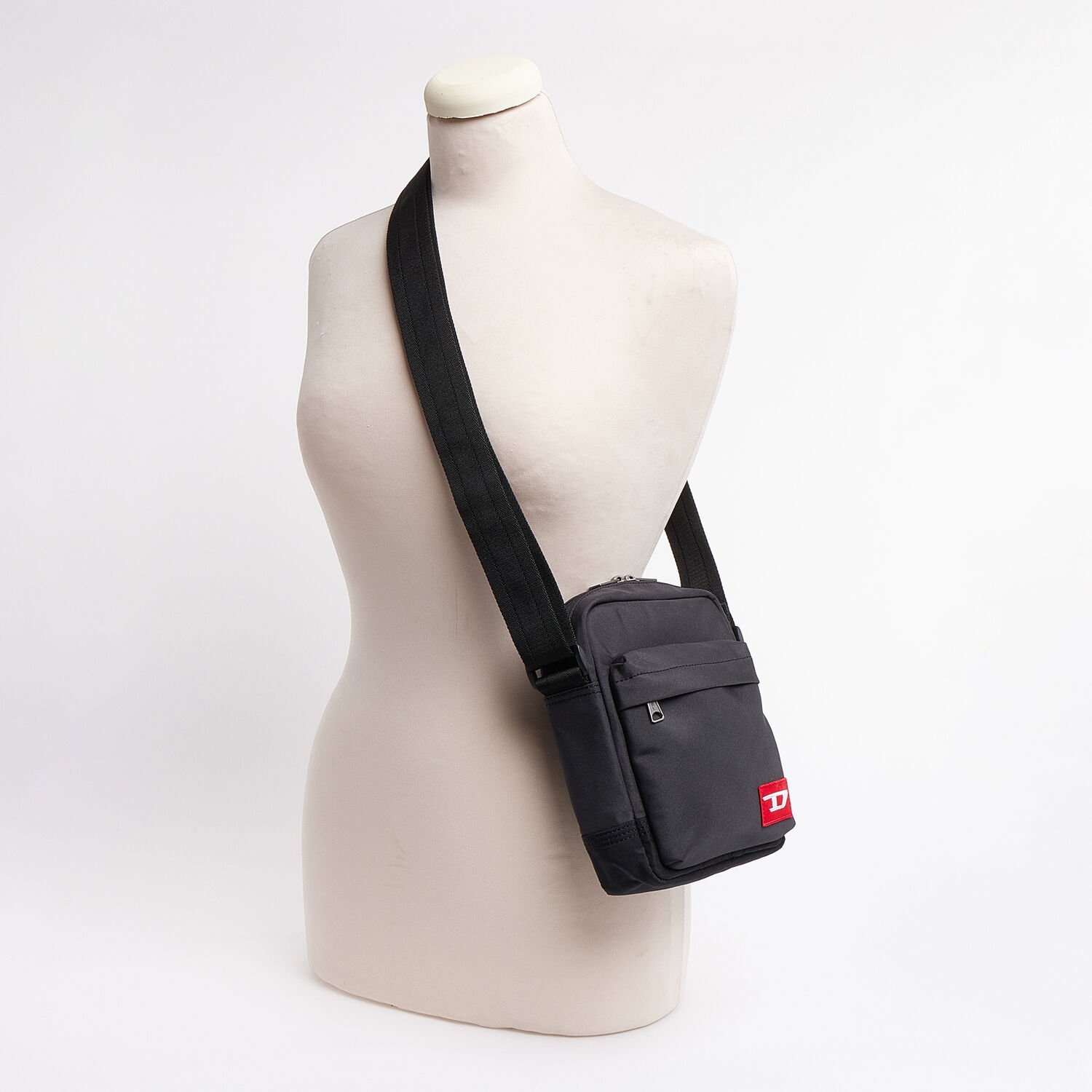Diesel Ware Black Recycled Nylon Shoulder Bag for Men Crossbody Messenger