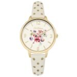 Brighten up any outfit with this beautiful spotty Cath Kidston watch complete with floral background. Designed in neutral tones that will compliment a variety of styles, it is an essential addition to any wardrobe. Add a classic summer feel to your work day or days out relaxing.