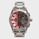 Item Description: Introducing the Diesel Men’s Time Frame Logo Dial Watch, model DZ4598. This stylish timepiece seamlessly blends fashion and function, featuring a 48mm round stainless steel case paired with a sleek black stainless steel bracelet and a convenient push-button deployment clasp.