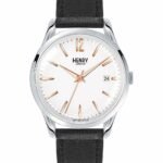 Henry London 39mm wristwatch from the Highgate collection complete with a silver white dial. With a stainless steel case and double domed acrylic lens, it is finished off with a black leather strap.