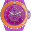 Delicious strawberries feature on this watch dial, set against a white background and housed within a 3cm x 8mm slimline, polished finish case. Also with matching silver tone hands, hour bars and numerals, the rose pink second hand adds just the right touch of colour and is repeated on the 1cm wide, pale blue leather strap with buckle. Water resistant 30m.