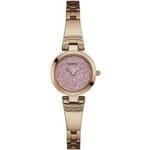This ladies Guess Lulu watch has a PVD rose plating PVD rose plating case and is powered by a quartz movement. It is fitted with a rose metal bracelet and has a pink dial.