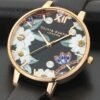 Adding jewellery and intricacy to their watches, the Olivia Burton case cuff collection matches their iconic designs, with a simple white dial and stainless steel case on a pale mauve leather strap, with a removable cuff that sits securely alongside the case, with gorgeous flowers and bees. Simply placed and removed, while still secure in place, this allows you to add delicate detail and sparkle to the watch at your heart’s desire.