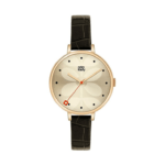 Orla Kiely ‘Ivy’ watch with a gold plated case, cream dial and a black leather croc strap.