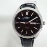 Smart style for the sophisticated gent, the Henley model boasts a bold black dial featuring a day and date display at 3-o-clock, three-hand movement and linear hour markers, in silver tones to co-ordinate with the surrounding bezel. The stainless steel case and classic black leather strap complete this automatic watch in style.