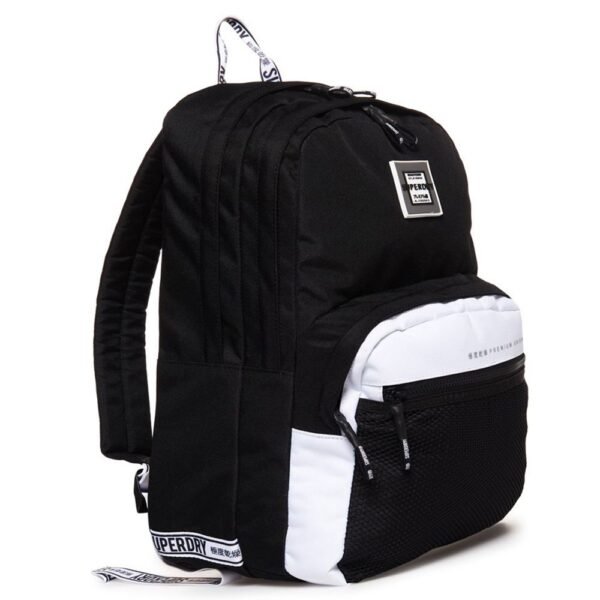 Superdry women’s Hayden backpack. Tap into the monochrome trend this season with the Hayden backpack. Classic in style, this backpack features two main compartments, one with a padded laptop sleeve, and smaller outer compartment, perfect for keeping your smaller essentials within easy reach. A top carry handle make this a great grab and go backpack, while adjustable shoulder straps and a padded back provide comfort and support. The Hayden backpack is completed with a rubber logo badge on the front, subtle logo detailing across the outer compartment and branding on the carry handle and straps.