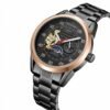 The hand assembled Swan & Edgar Sports Automatic is presented in a striking black case and bracelet accompanied by a contrasting rose outer bezel and a stainless steel skeleton caseback. The timepieces motor racing rev counter numerals are embellished on a charcoal black textured dial which exposes the watchs 20 Jewel Automatic Movement, Moon Phase and 24-hour functions making this range a truly individual and important edition in our watch collection. The love of cars and watches has always overlapped. The metal, material and mechanical components are common to both the timepiece and the vehicle. Inspiring design, precision and technical innovation are at the heart of the horological world and the race track from Monte Carlo to Las Vegas. Swan & Edgar For nearly 100 years, the world-famous Swan & Edgar department store has marked the cornerstone of Londons West End luxury fashion scene. With several decades of British in-house watch design expertise, we now proudly re-introduce Swan & Edgar with the mission of building state-of-the-art British heritage watches which meet todays luxury style aspirations. Each individual Swan & Edgar watch is hand assembled and comes with a 5-year warranty.