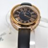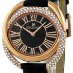 Swarovski are thrilled to introduce to our bestselling collection of timepieces this sophisticated and romantic new jewellery watch: The Duo. Symbolising unity and eternity, two interlaced rings fuse together to form the rose-gold tone PVD stainless steel case. Whilst one ring sparkles with 133 clear crystals in lavish micro pavé, the other is crafted in simple polished metal, creating a refined and balanced look. Interpreted in a modern way, the Roman numeral index markers are matched with a glamorous engraved black sunray dial. A smooth and supple black calfskin leather strap completes the design. Full of exceptionally rich details, The Duo watch is the perfect choice for a discerning woman.