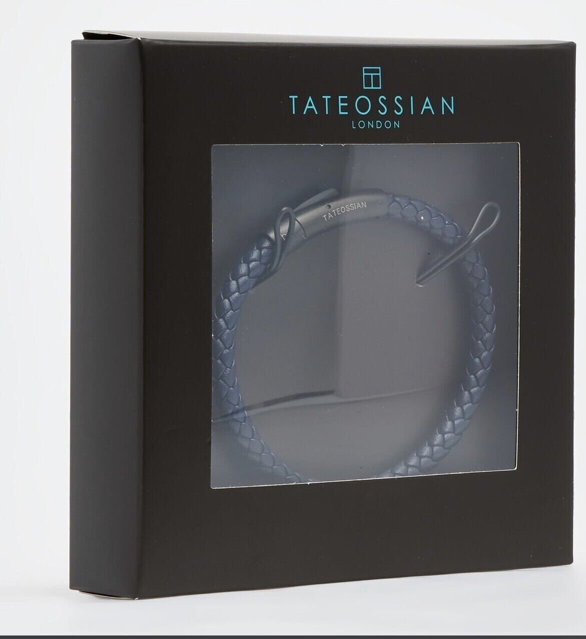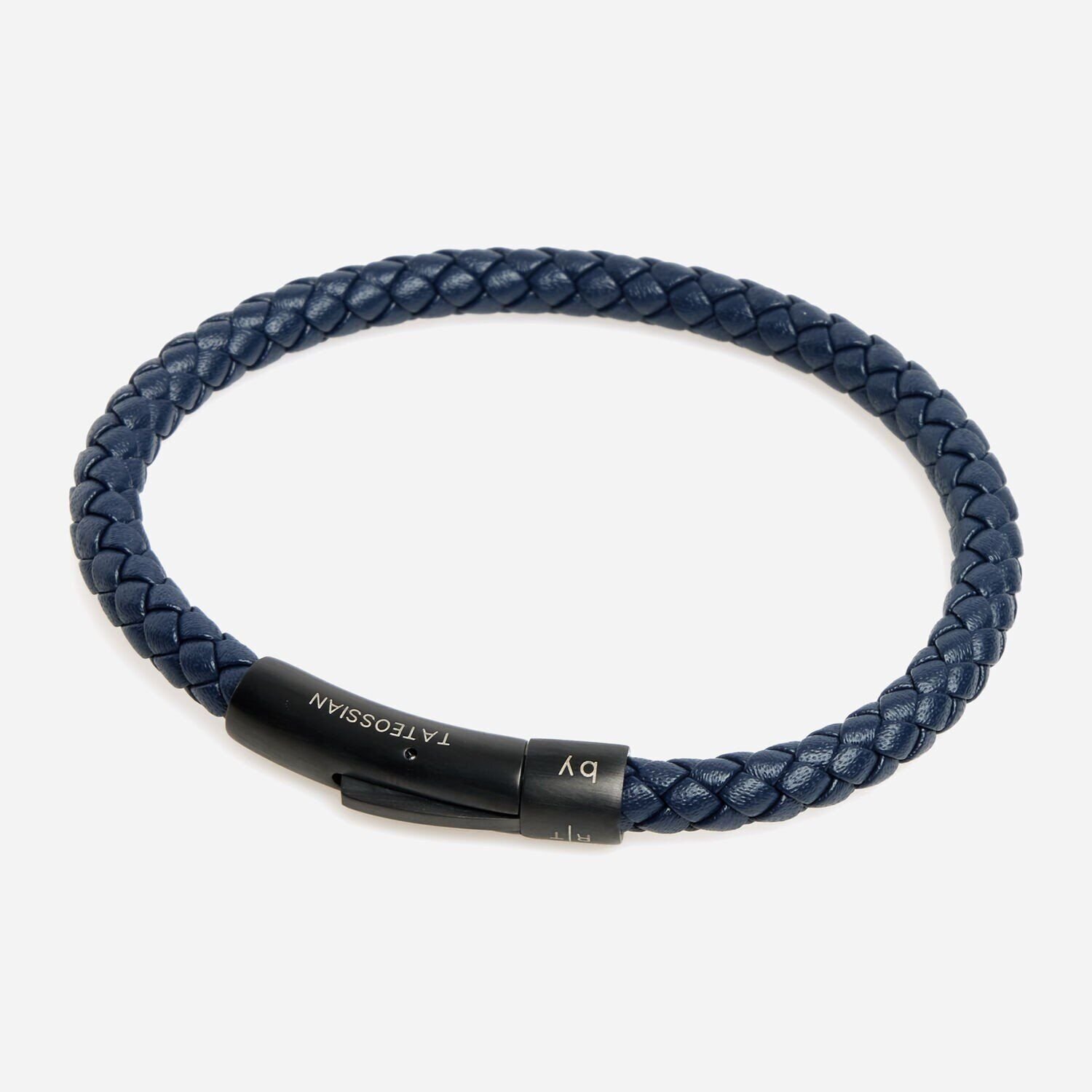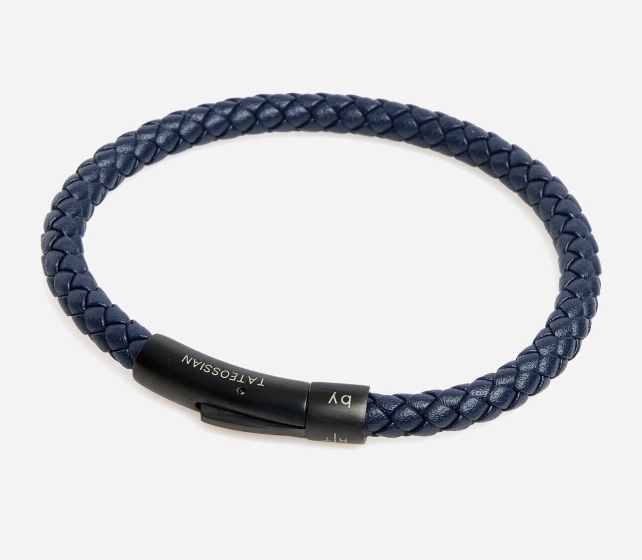 Add a touch of sophistication to your style with this stunning TATEOSSIAN Navy Blue Leather Bracelet. This exquisite piece from TATEOSSIAN LONDON is crafted with high-quality plated leather and features a sleek, logo-stamped stainless steel clip fastening. The braided design ensures both comfort and durability, making it a versatile accessory for any occasion. Perfect for men who want to infuse their outfit with a pop of blue, this bracelet is a testament to British craftsmanship and elegance. Measuring 21cm in length, it is ideally suited for those with larger wrists. Don’t miss out on this stylish and timeless bracelet from TATEOSSIAN.