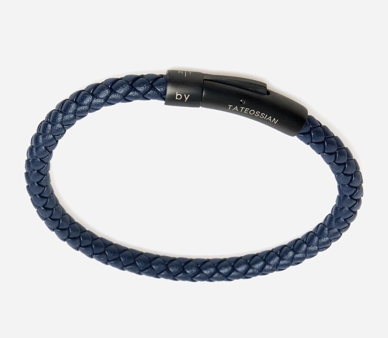 This TATEOSSIAN Navy Blue Leather Bracelet is the perfect accessory to elevate your look with a blend of modern style and traditional craftsmanship.