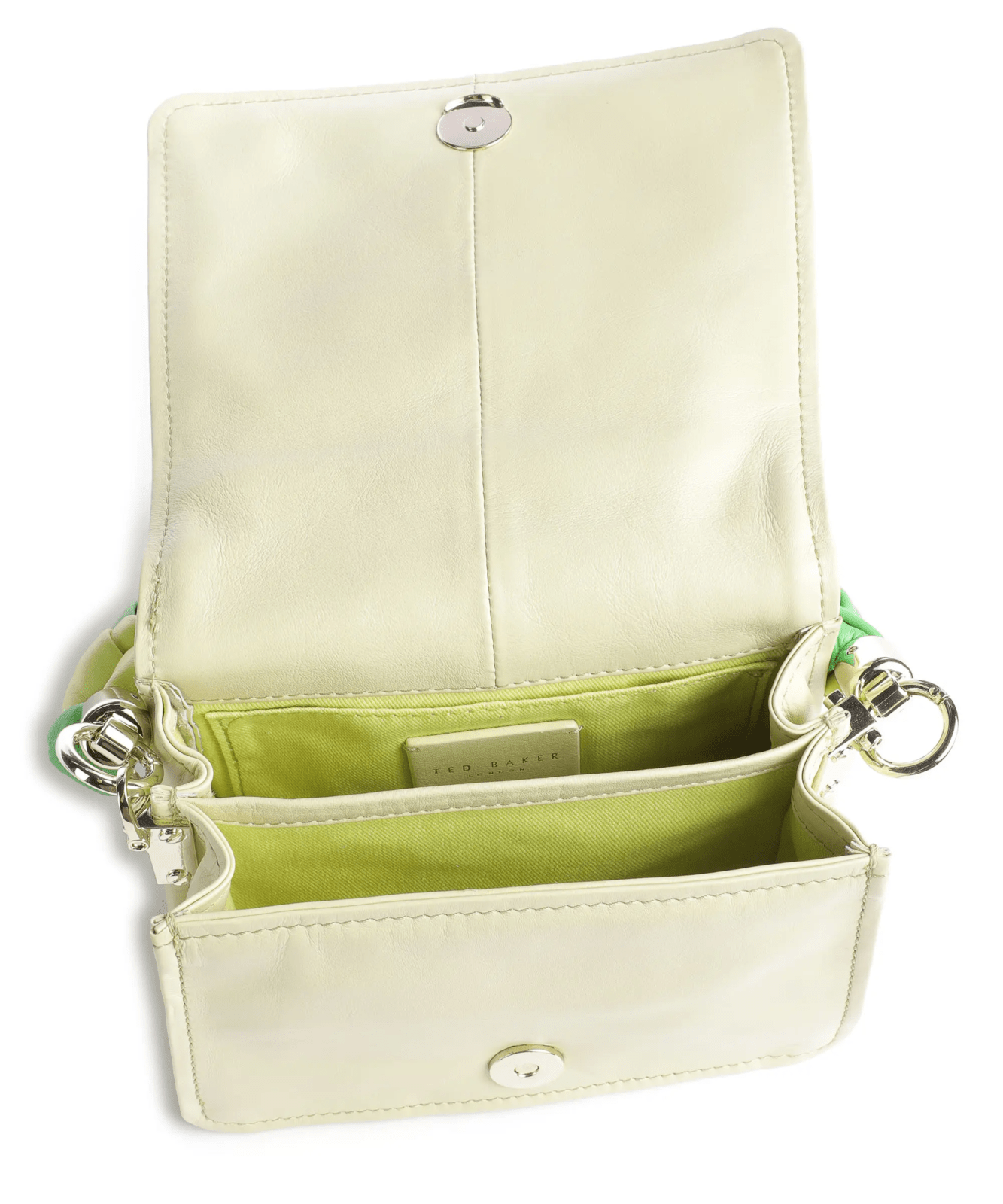 Crafted from the finest leather, this bag exudes sophistication with its knotted leather grab handle and gold-tone hardware. Designed to suit any occasion, this versatile bag features a detachable and adjustable shoulder strap, allowing you to effortlessly transition from a chic handbag to a stylish crossbody. The front flap, adorned with a magnetic clasp closure, adds a touch of refinement while ensuring the security of your belongings. Inside, you’ll find two main compartments, providing ample space to organise your essentials. The internal zip compartment further enhances functionality, keeping your valuables safe and easily accessible. To showcase the brand’s heritage, the Ted Baker logo is discreetly embossed on the front, adding a touch of understated luxury. Whether you’re attending a glamorous event or simply running errands, the Maryse Knot Top Handle Bag effortlessly combines style and practicality. Care: Clean with a soft damp cloth. Measurements: H: 19cm x W: 17cm x D: 9cm. (Approx.)