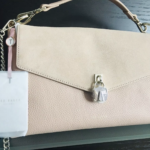 Brand new with tags, the Ted Baker Marieaa Shoulder Bag offers a sophisticated blend of leather and suede in a beautiful taupe and blush tone. Perfect for day or night, this elegant bag features a luxurious padlock detail on the front. The flap-over design opens up to a spacious interior, complete with a slip pocket for your smaller essentials. The bag also comes with a detachable top handle and a shoulder strap for versatile styling.