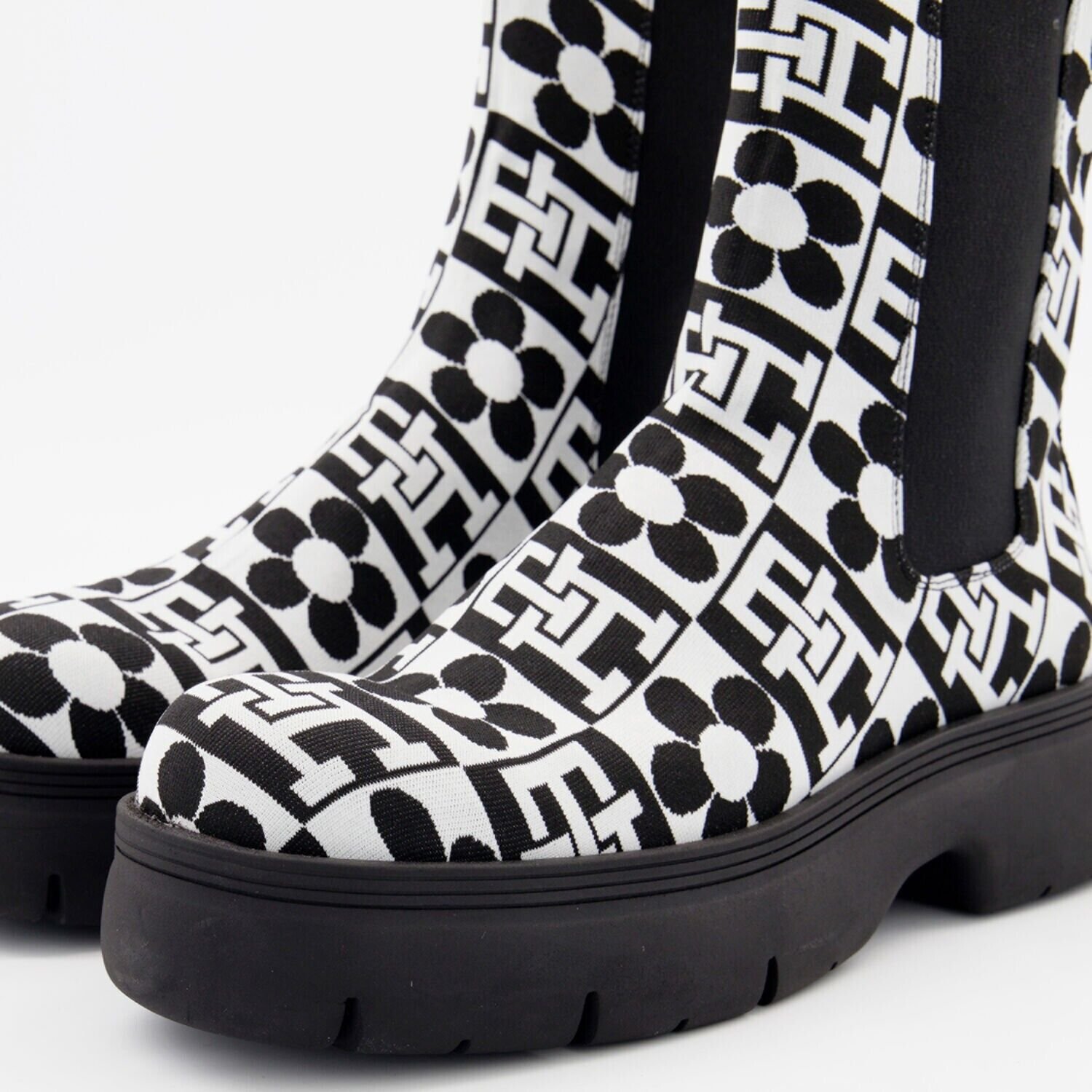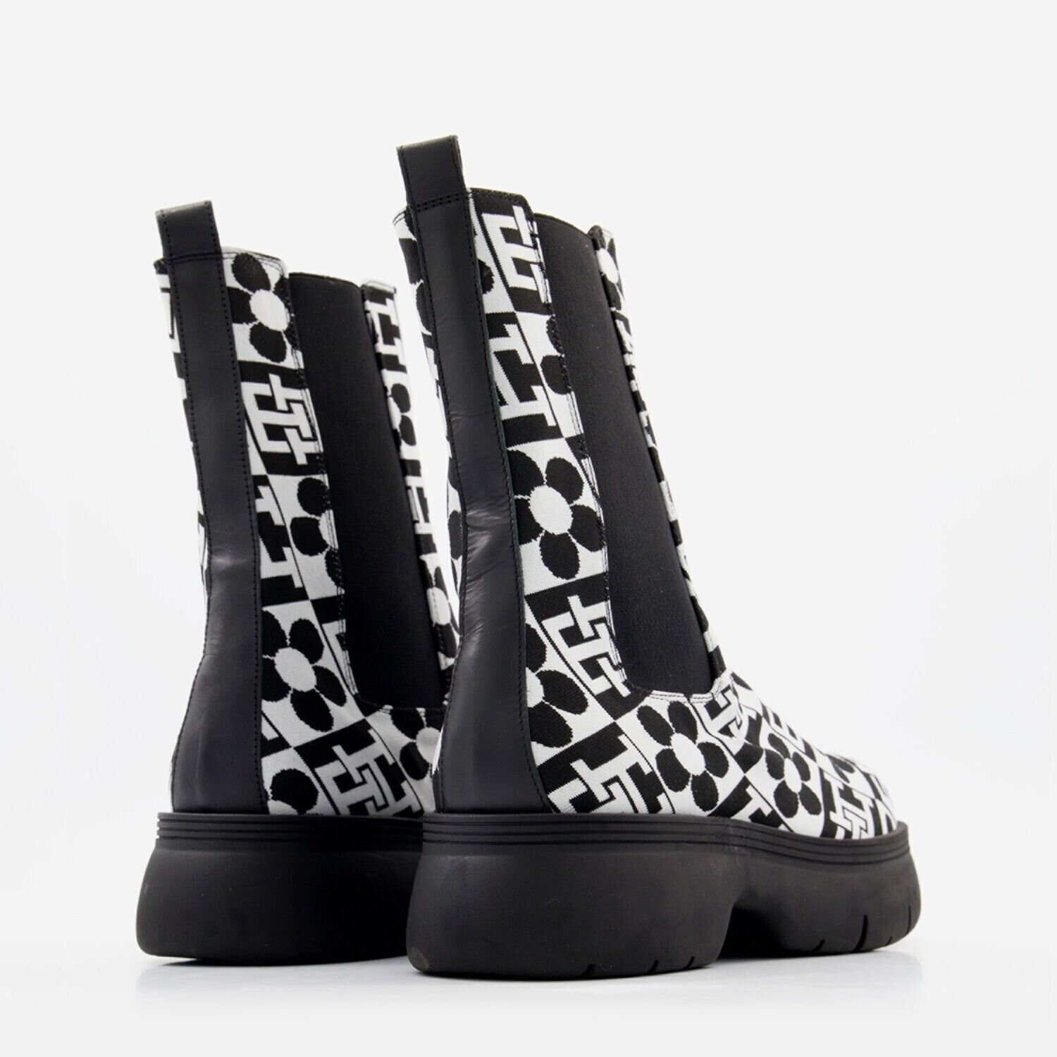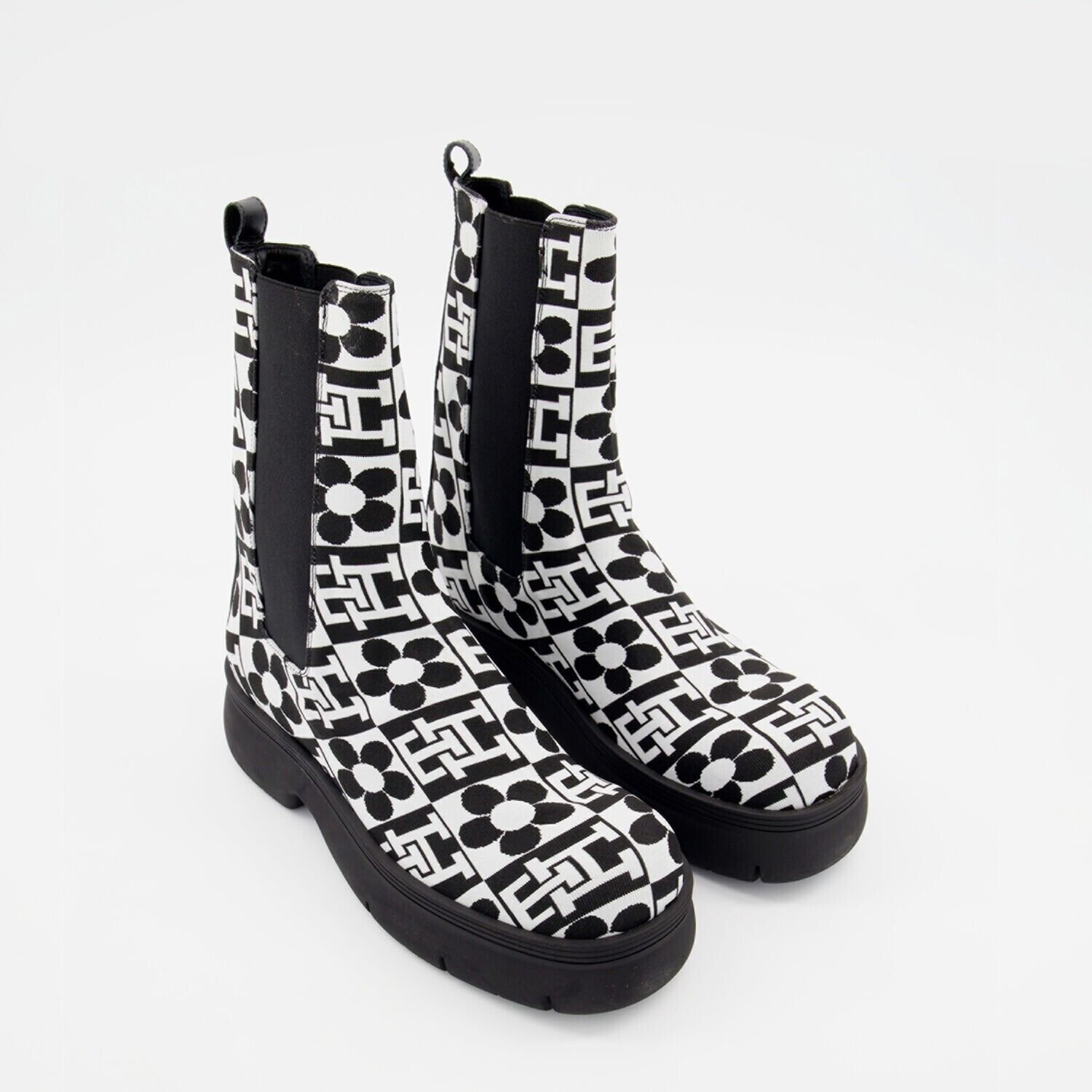 Step up your style game with these Tommy Hilfiger x Richard Quinn unisex Chelsea boots. With a round toe shape and pull-on closure, these boots are perfect for casual occasions. The black and white color combination, featuring the iconic Tommy Hilfiger logo, adds a touch of sophistication to your outfit.