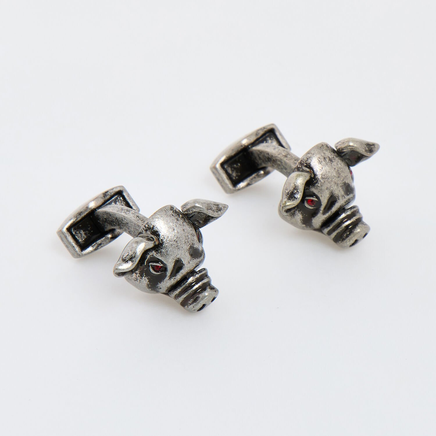 Tateossian Mechanical Pig Cufflinks Oxidised with Red Swarovski Elements