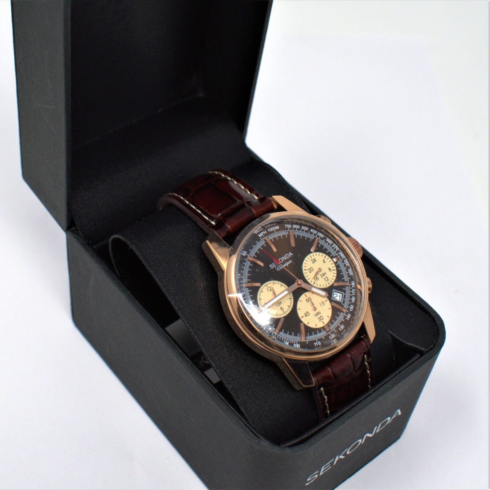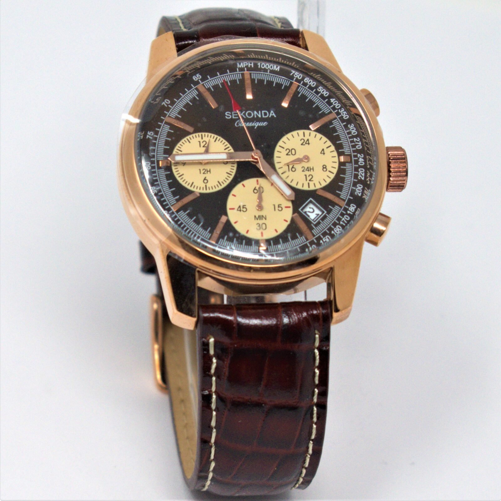 Sekonda 1482 Men’s Multi Dial Rose Gold Brown Leather Strap Watch