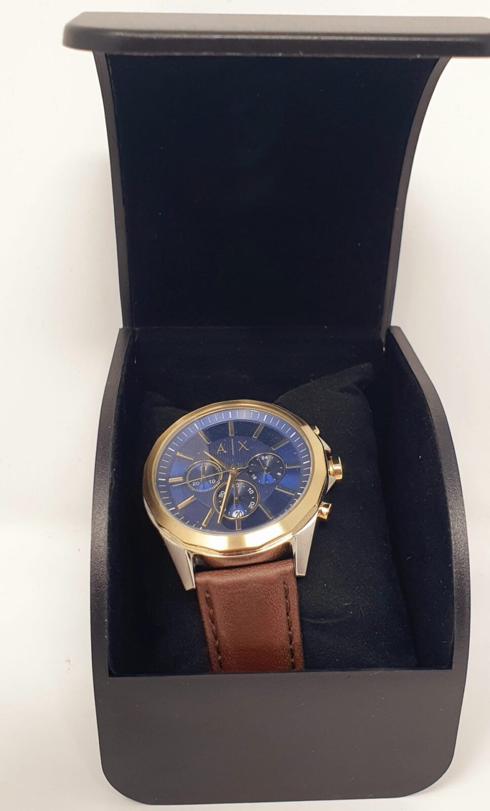 Armani Exchange AX1460 Mens Leather Strap Watch, Multi/Black