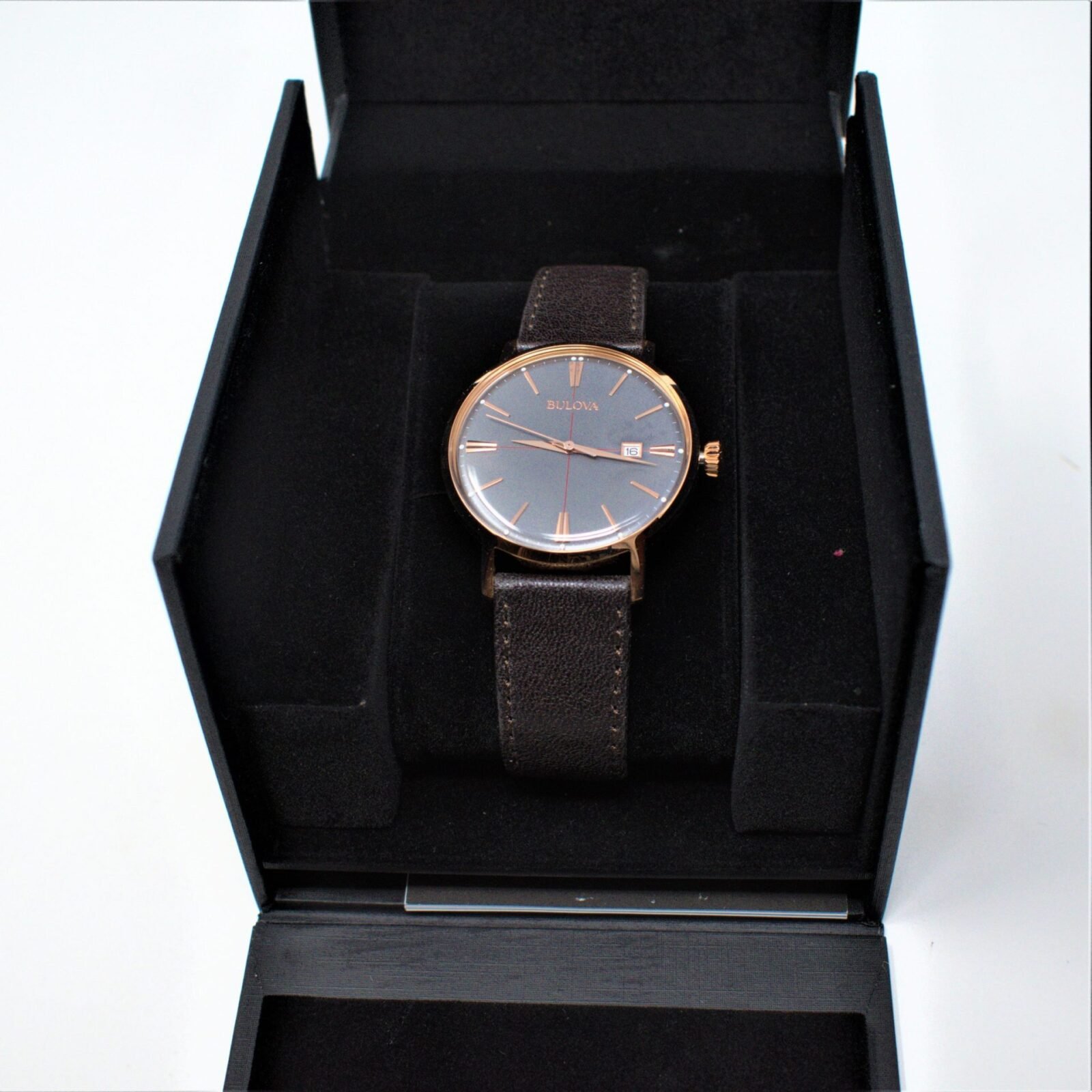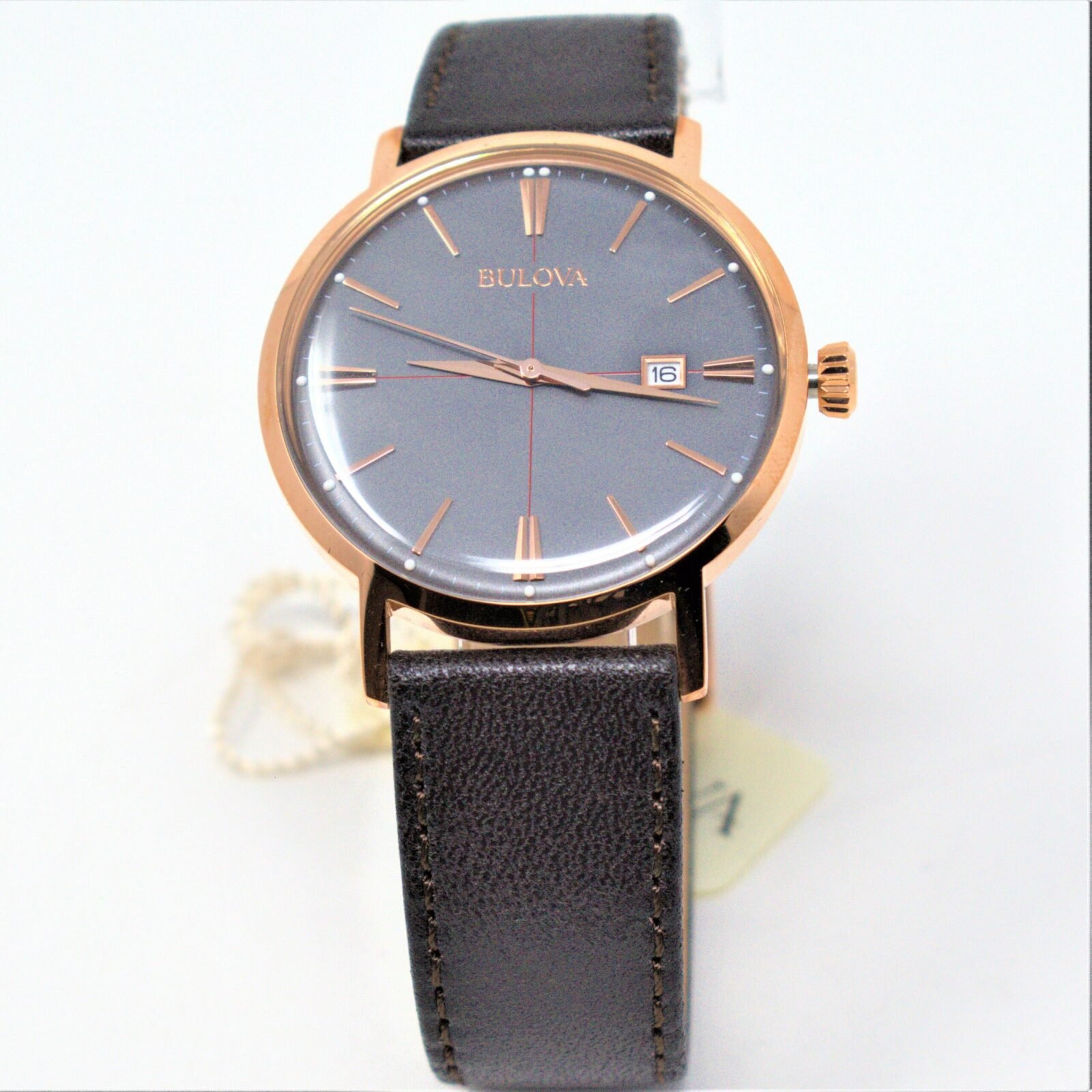 Bulova Designer Aerojet Watch Brown Leather Strap Wrist Watch 97B154