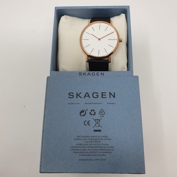 Skagen Mens Signatur Slim Titanium Watch Black Leather SKW6430