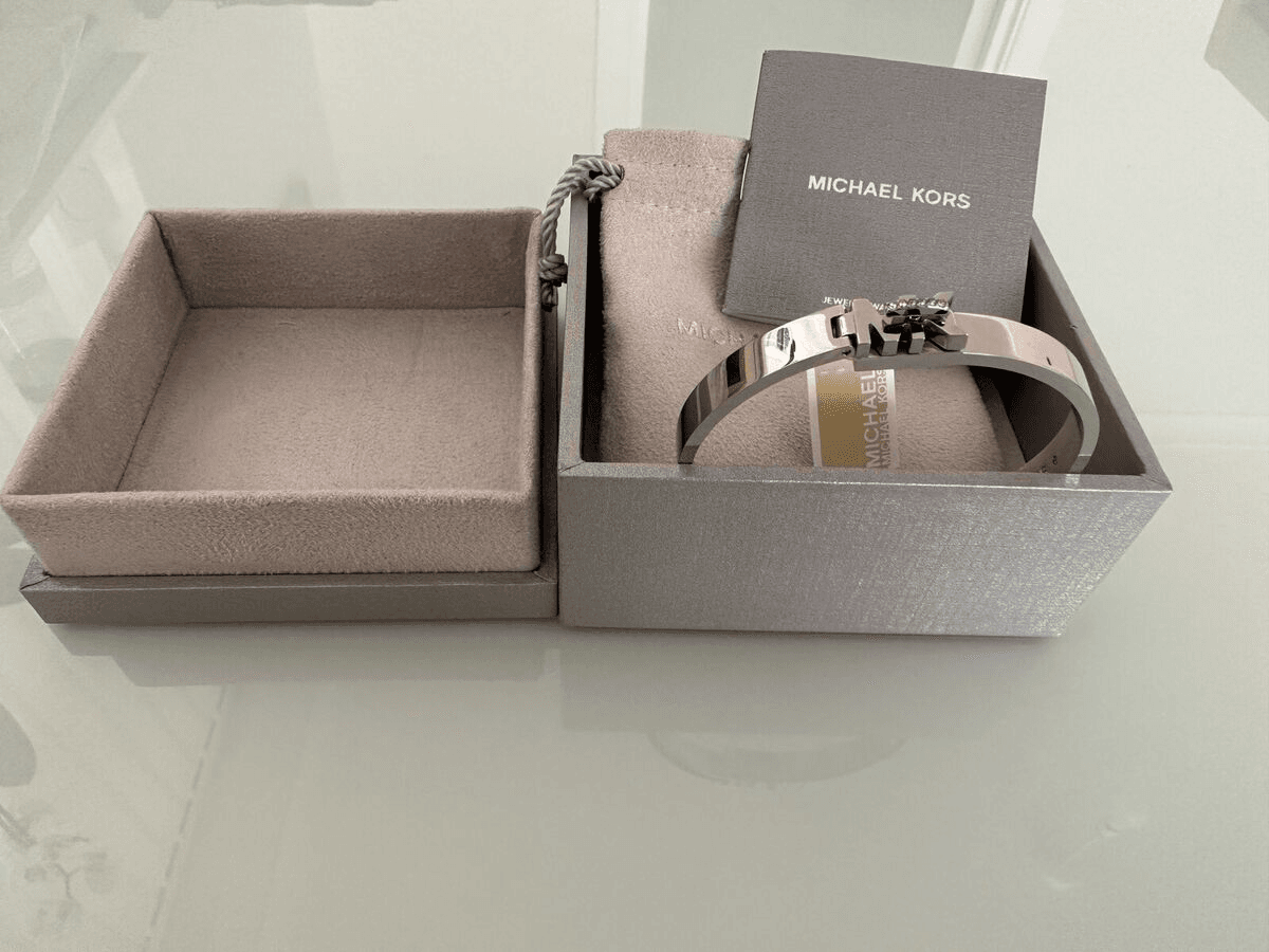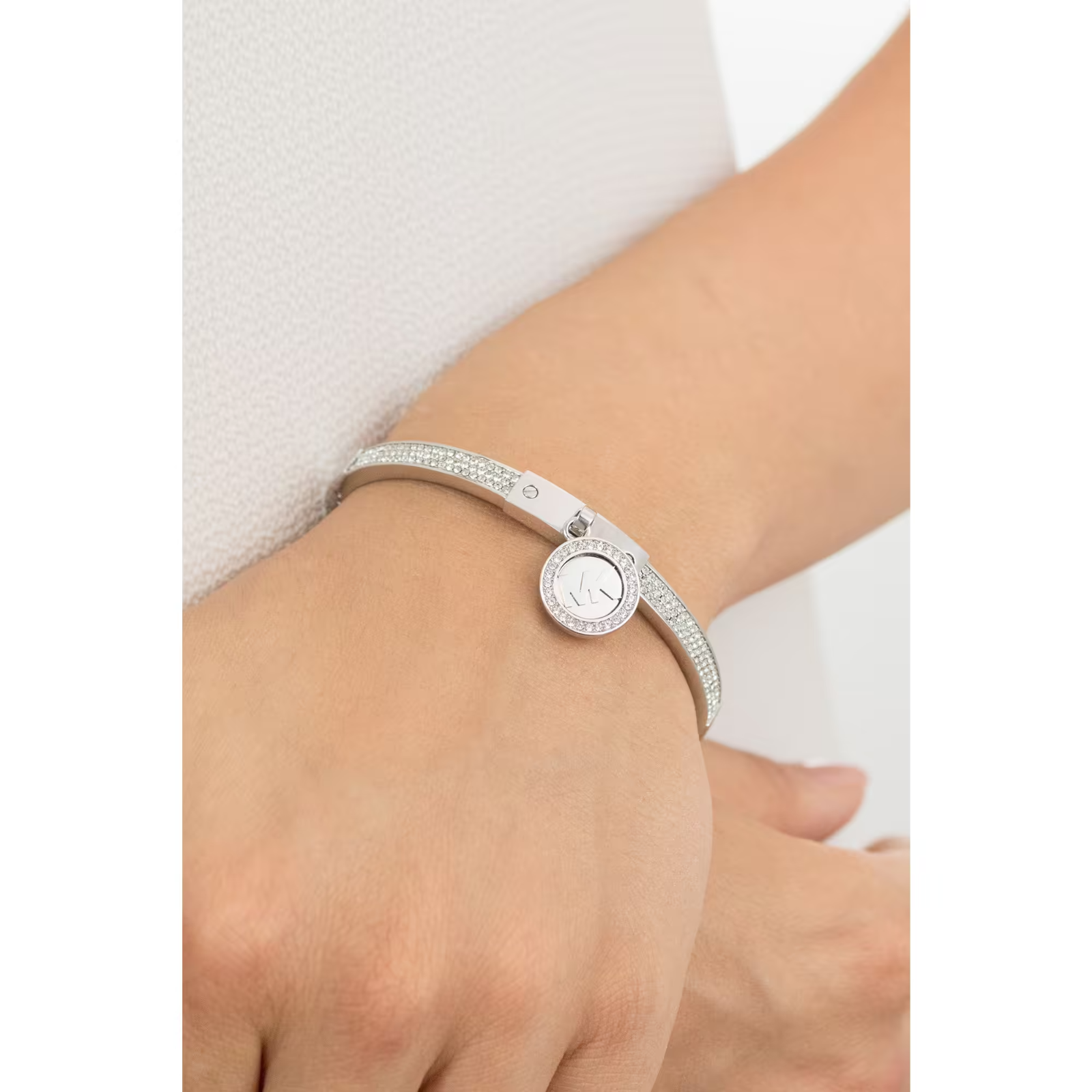 Michael Kors MK Logo Silver Bangle Bracelet Crystals MKJ7698040