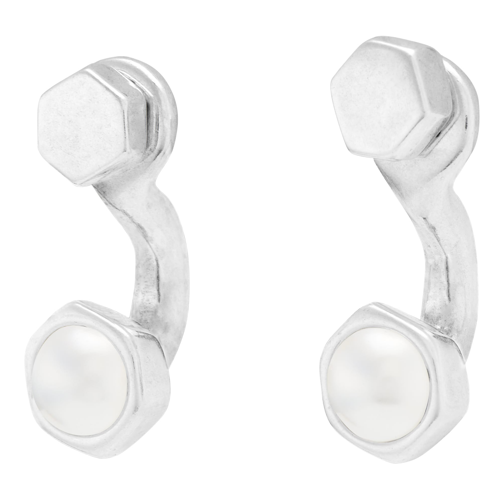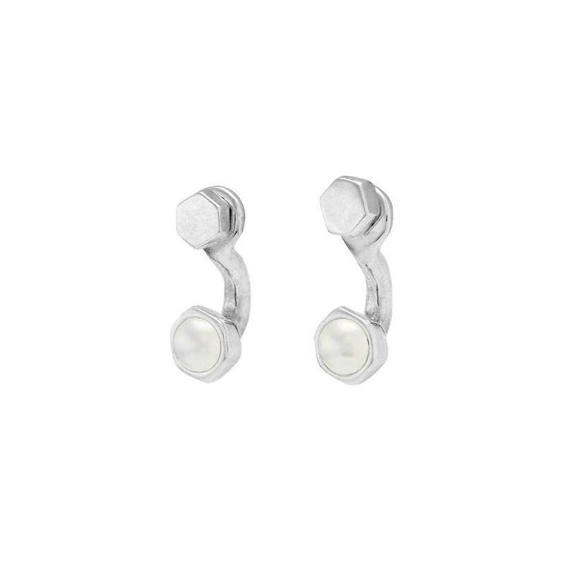 UNOde50 Silver Tone Curved Metal Stud Earrings for Women PEN0727BPLMTL0U