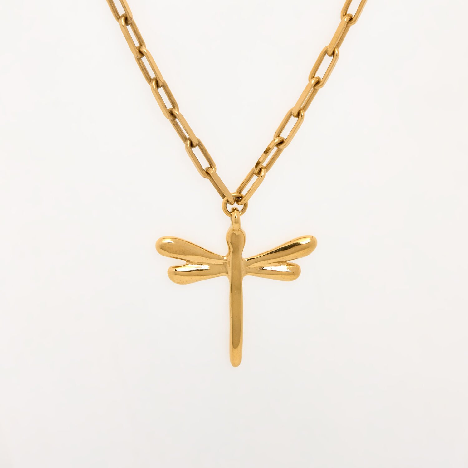 UNOde50 Freedom Dragonfly Necklace Gold Plated Short Chain Women COL1574ORO0000U
