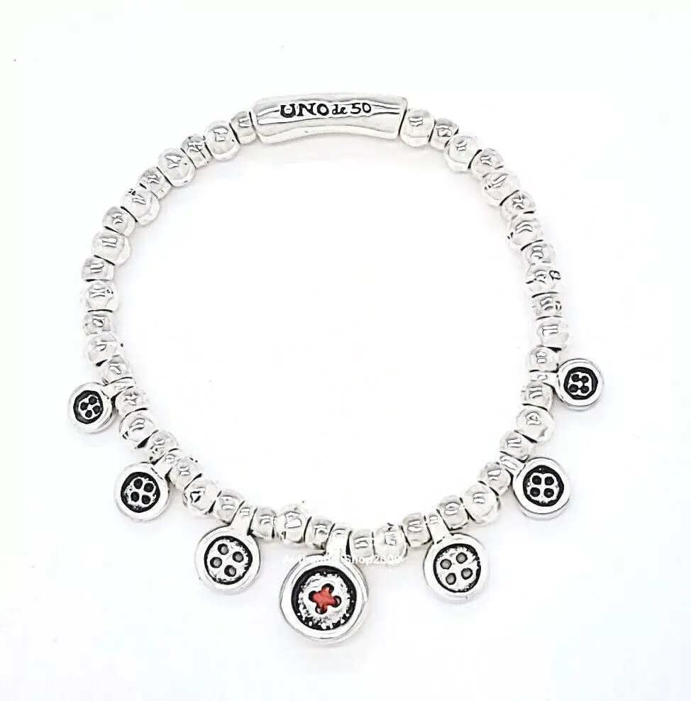 UNOde50 Lady in Red Silver Beaded Thread of Life Elastic Bracelet