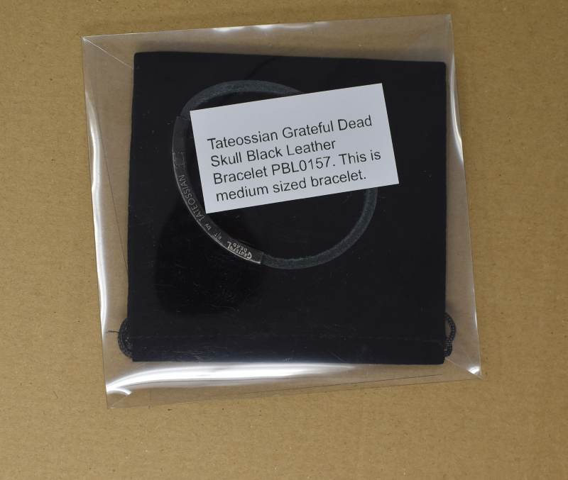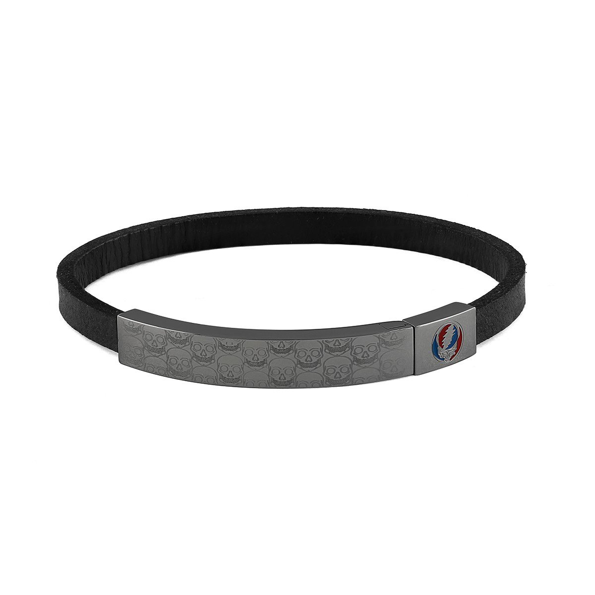 Tateossian Grateful Dead Skull Black Leather Bracelet PBL0157