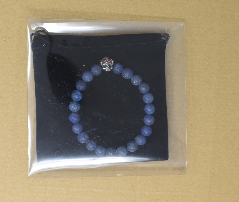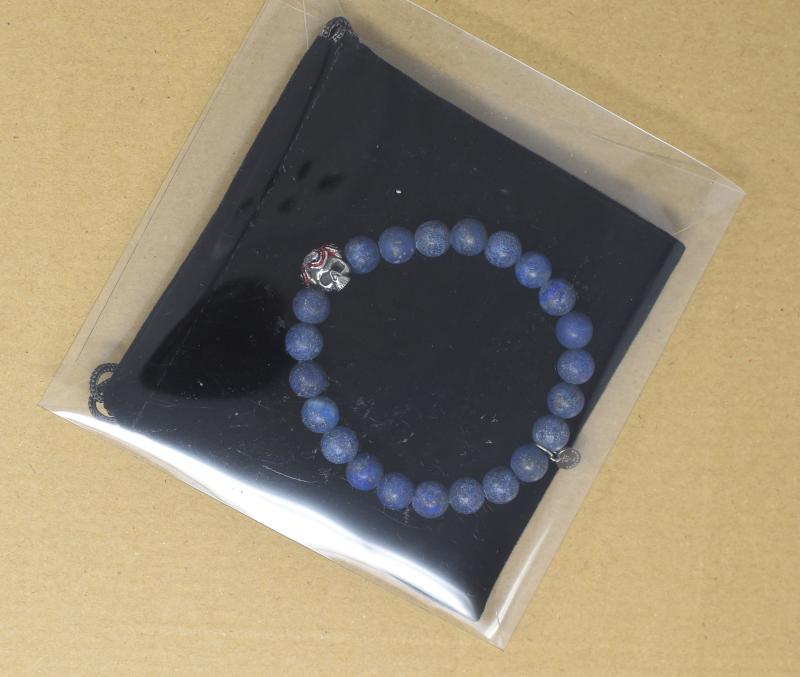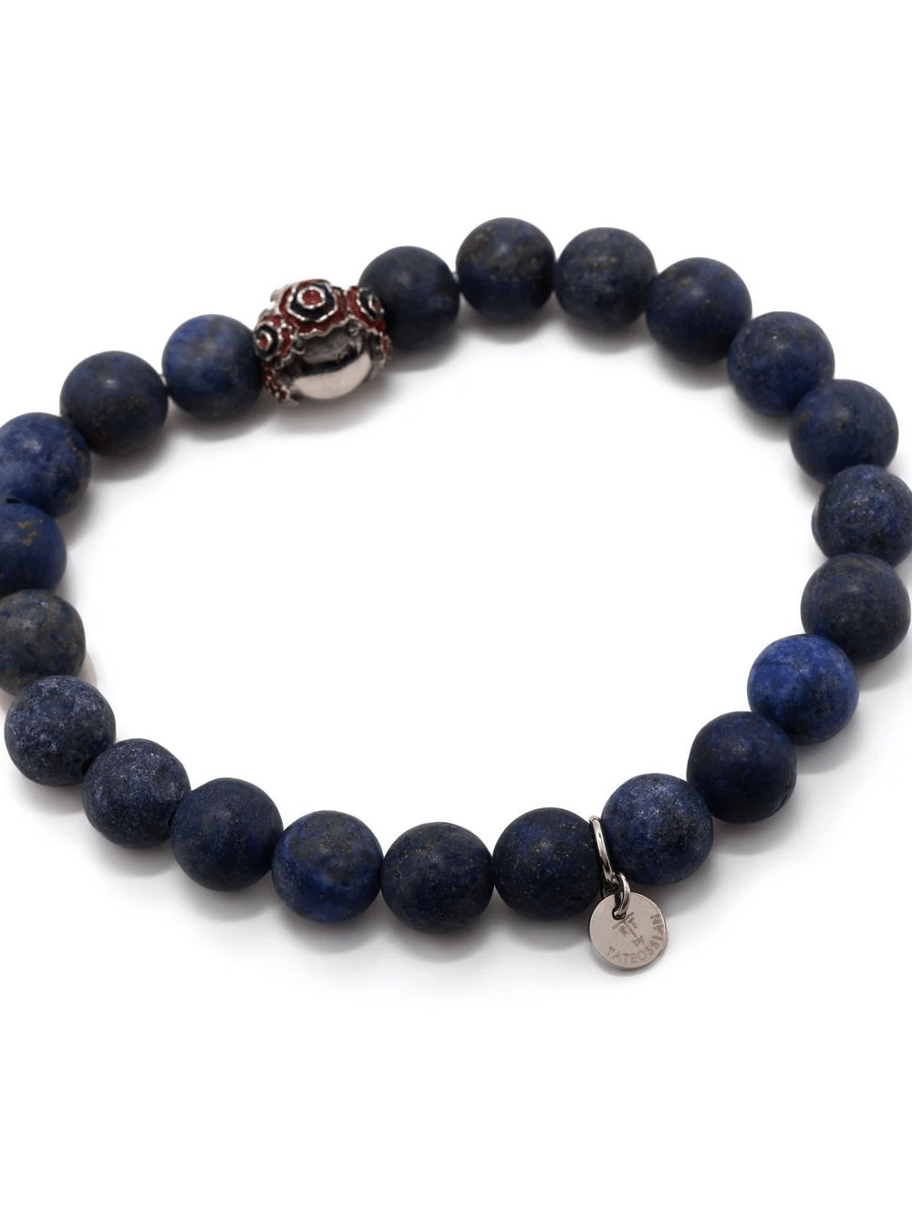 Tateossian Grateful Dead Skull Bracelet with Blue Stains Matte Lapis Beads