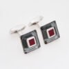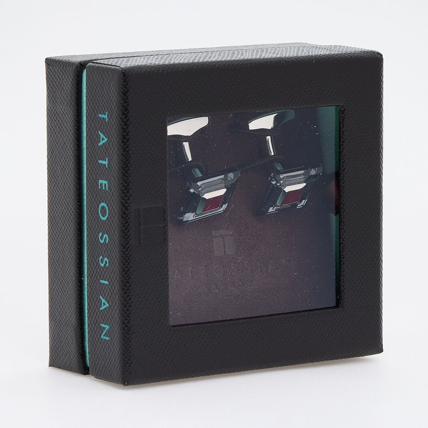 Tateossian Cufflinks Rhodium Swarovski Silver Night and Red Enamel Stones CL6464