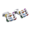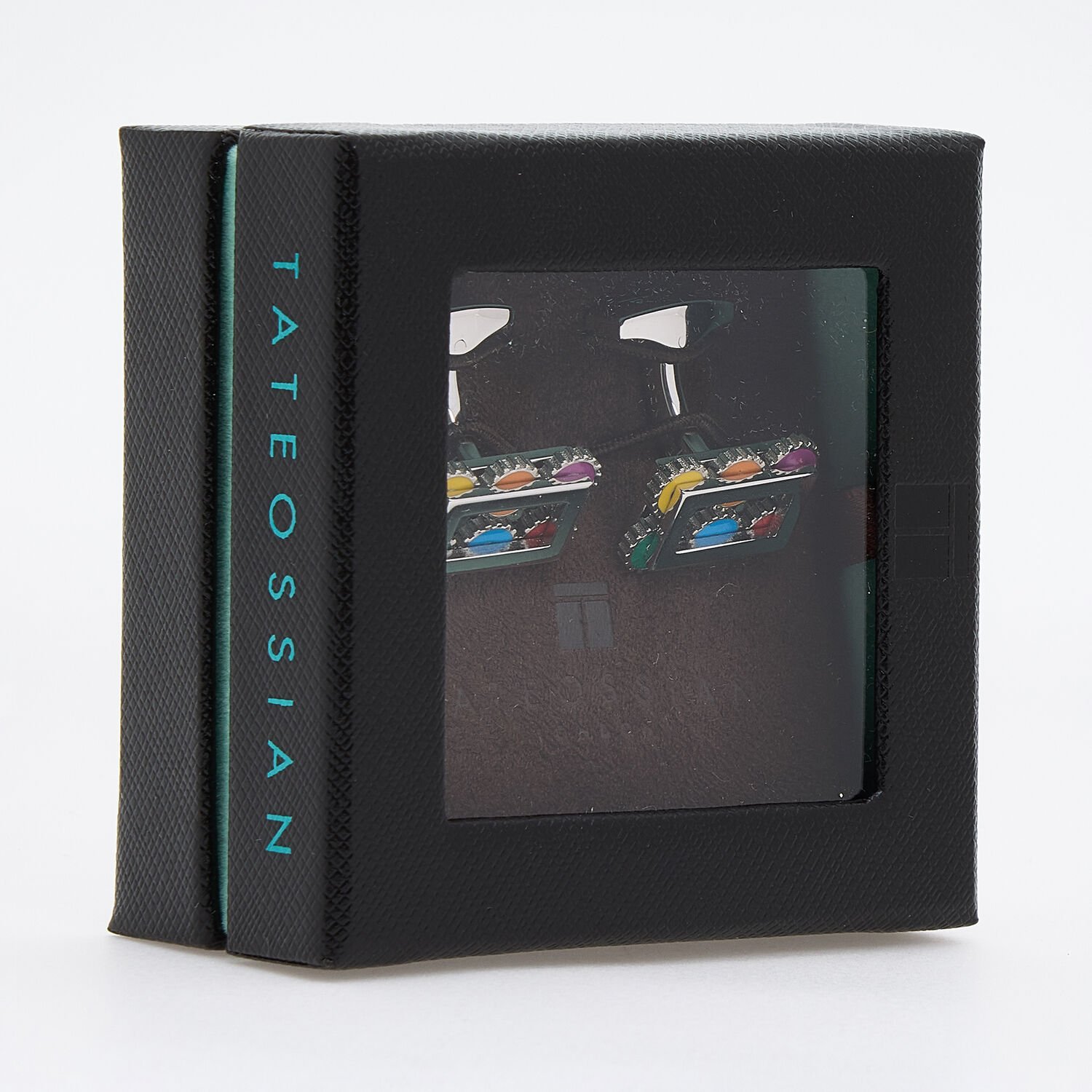 Tateossian Cufflinks Rhodium Swarovski Silver Night and Red Enamel Stones CL6464