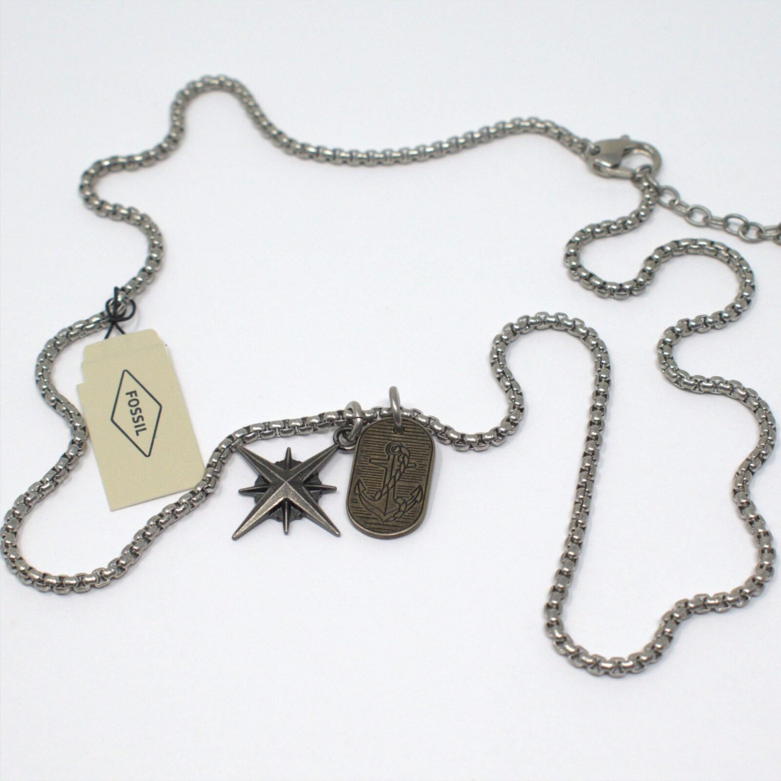 Fossil Men’s Meaningful Motifs Stainless Steel Pendant Necklace JF03624998