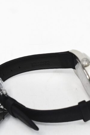 This Dreyfuss ladies two tone rose gold plated case features a Ronda quartz movement and flat sapphire glass in a fashionable 32mm case. Roman numerals are printed onto a silver white dial, with two diamonds situated at 8 o’clock on the dial. A stunning watch. Seafarer standard.