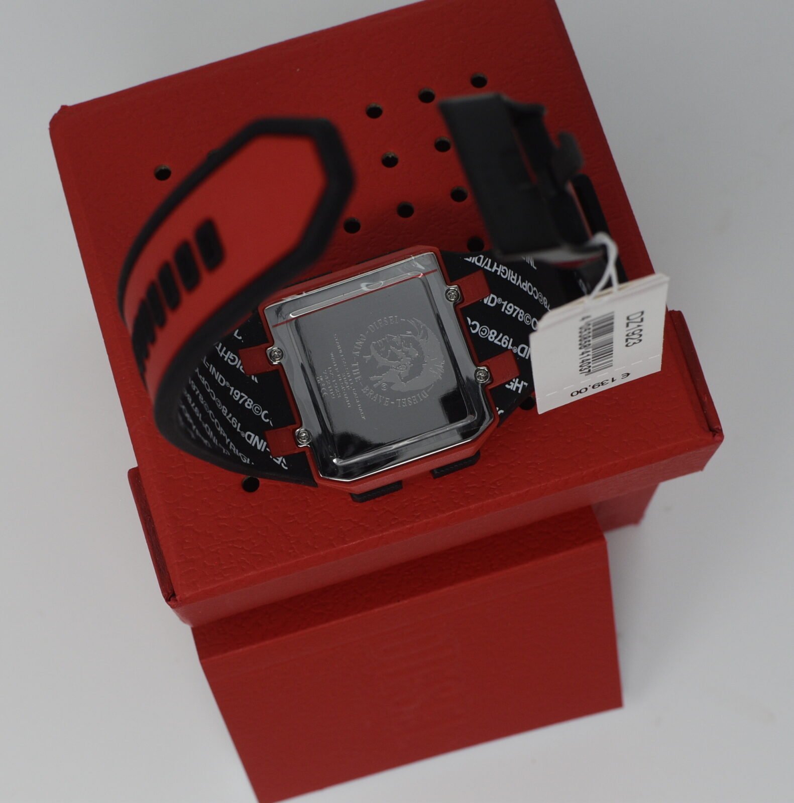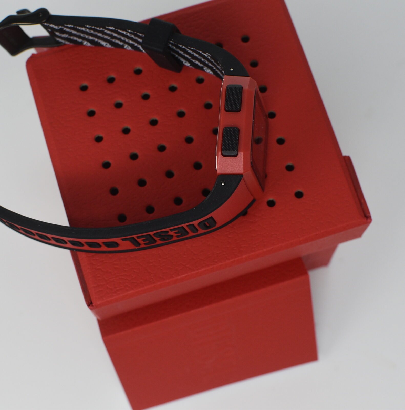 Diesel Unisex Chopped Digital Black & Red Silicone strap Watch DZ1923