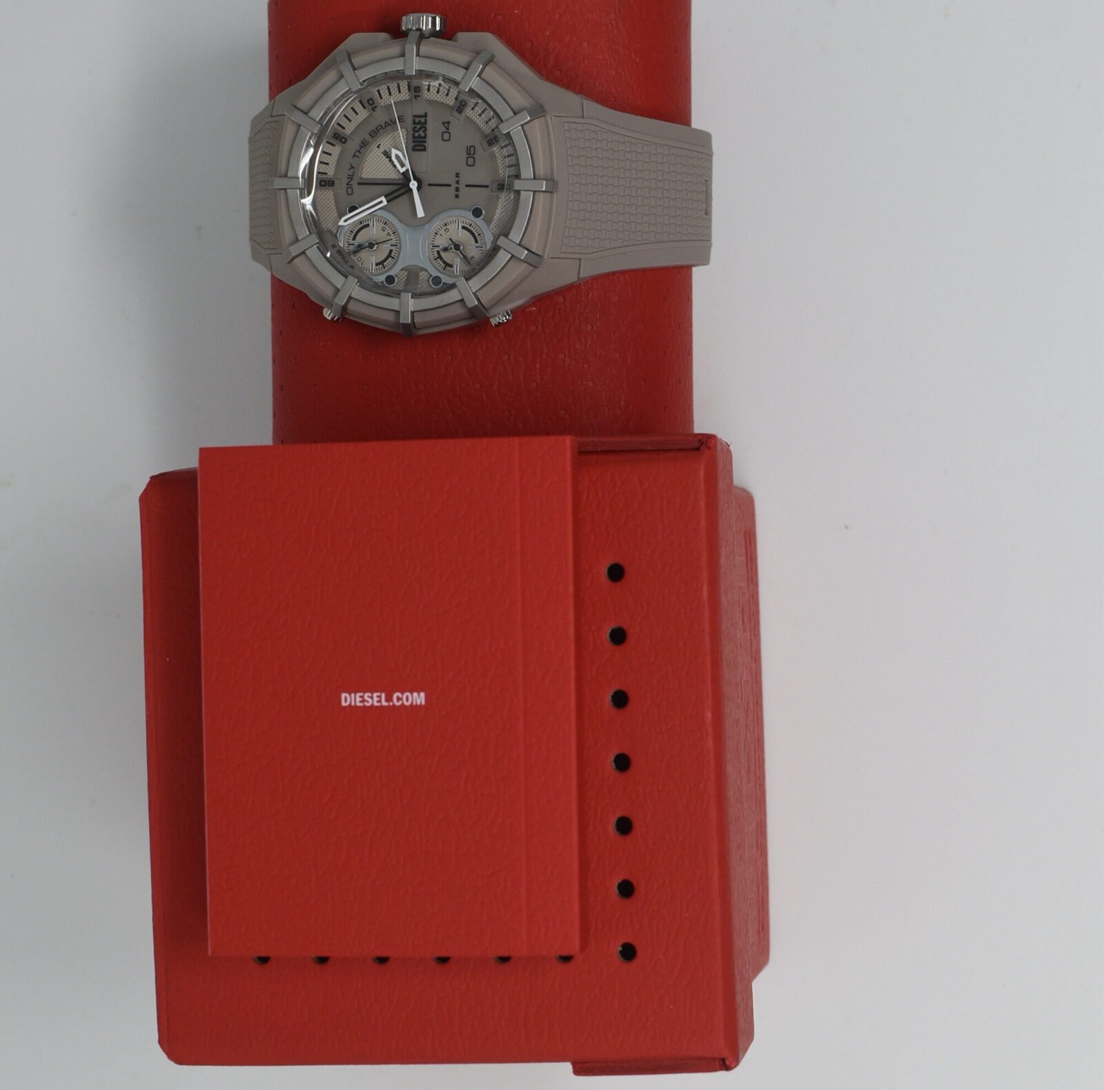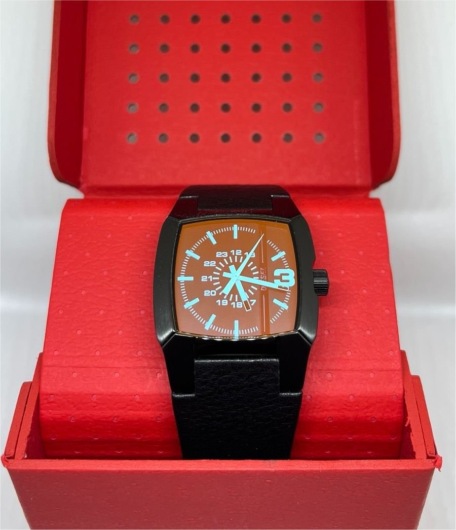 Diesel Framed Three-Hand Black and Red Leather and Silicone Watch DZ4618