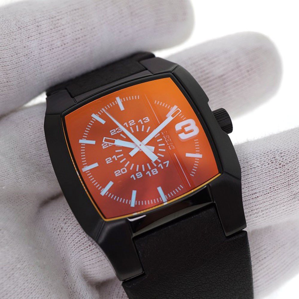 Diesel Men’s Watch DZ2000 Cliffhanger Black Leather Watch Multicolour Dial