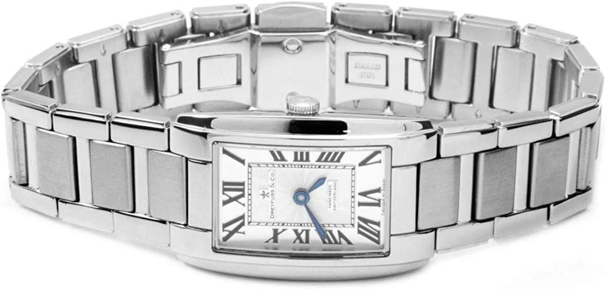 Dreyfuss & Co Ladies Silver Watch Swiss Quartz Rectangular DLB00051/01