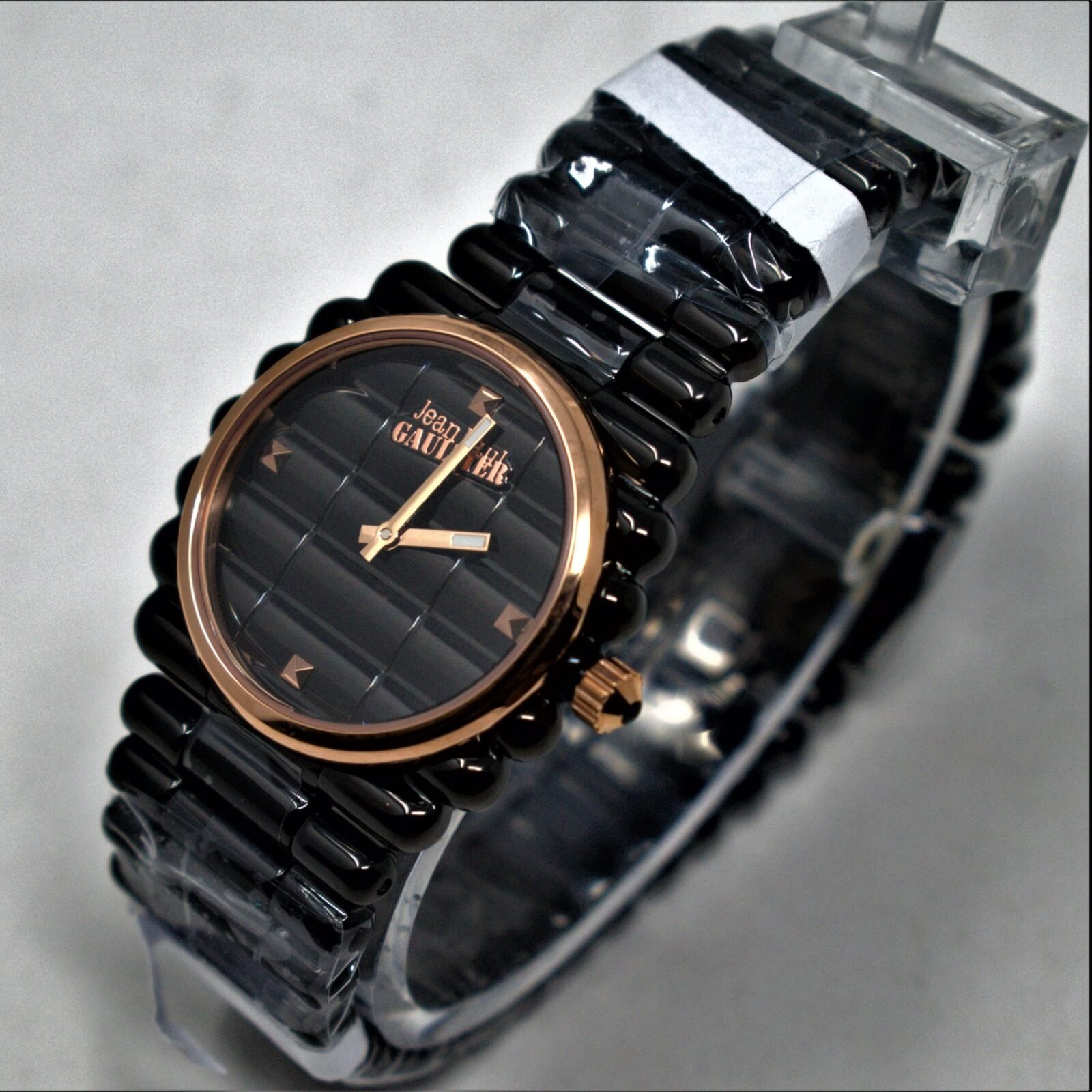 Jean Paul Gaultier Womens Bord Cote Black PVD Bracelet Watch 8504104