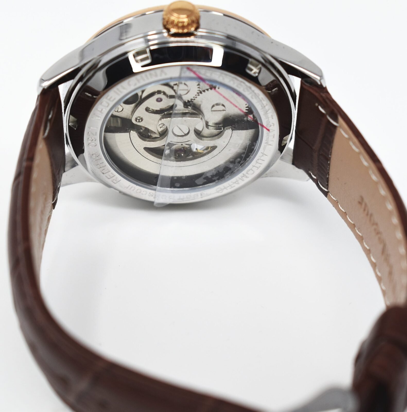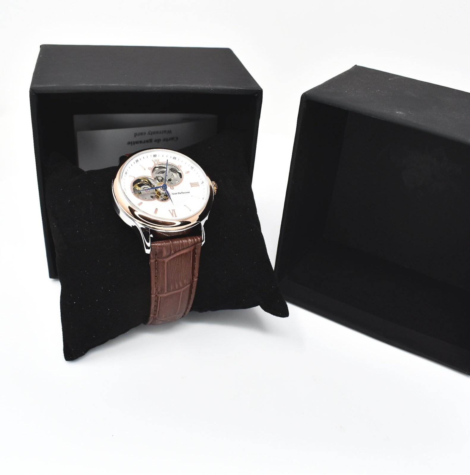 Jean Bellecour Automatic Skeleton Watch Black Leather Open Heart JBW5022