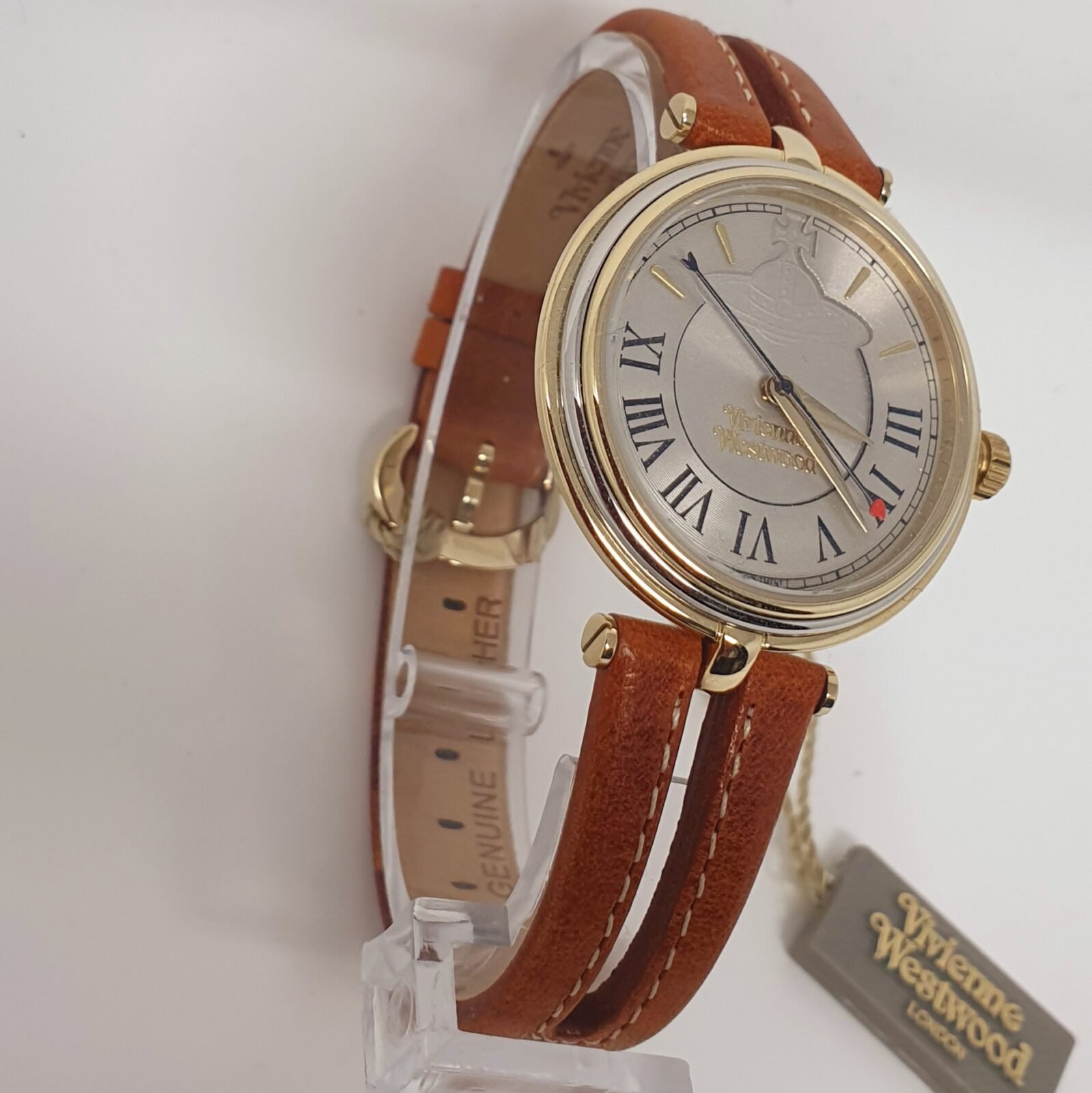 Vivienne Westwood Cavendish Gold Dial Brown Leather Strap Watch VV299GDBR
