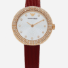 Emporio Armani Ladies Watch Burgundy Leather Quartz Crystal White Dial AR11417
