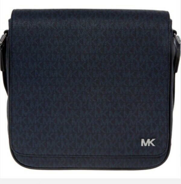 MICHAEL KORS Jet Set Mens Messenger Bag Medium Printed LOGO Baltic Blue RRP £275