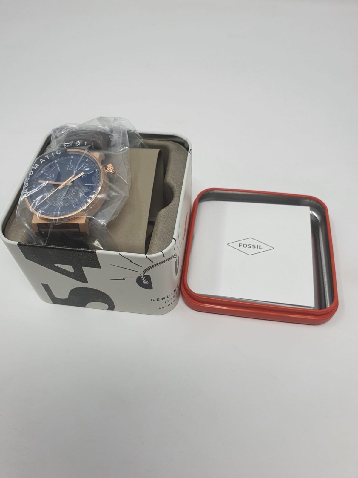 Fossil Automatic Watch BQ2650 Fenmore Brown Leather Rose Gold Case Skeleton