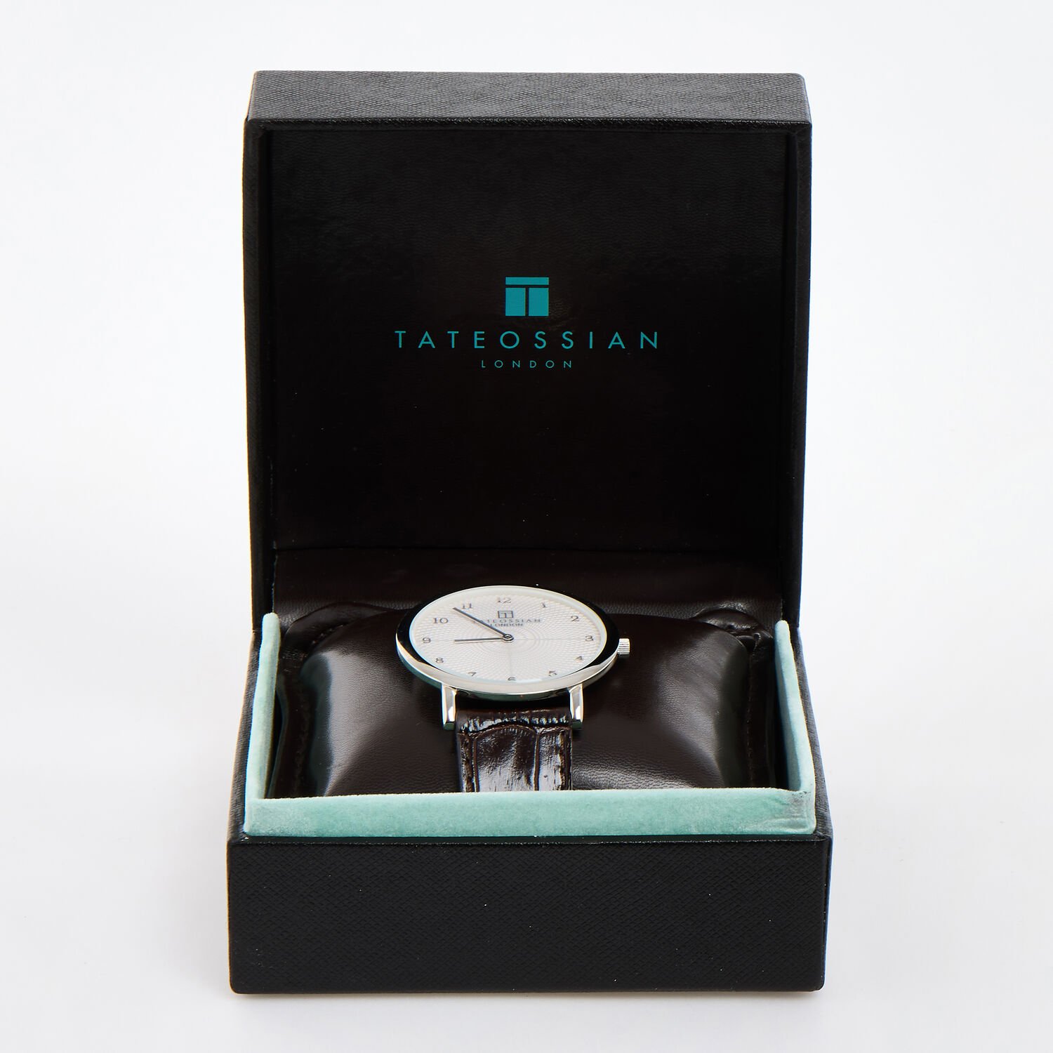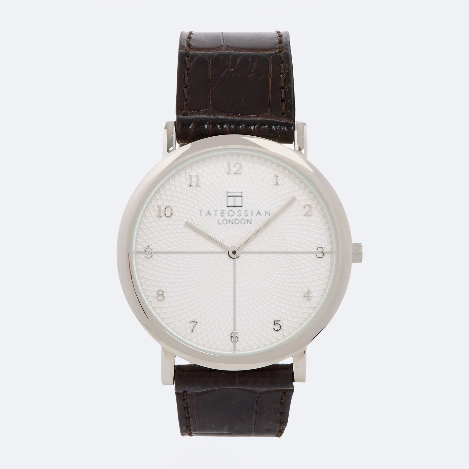 Tateossian Rotondo Guilloche Ultra Slim Men’s Quartz Watch Leather Strap WA0093