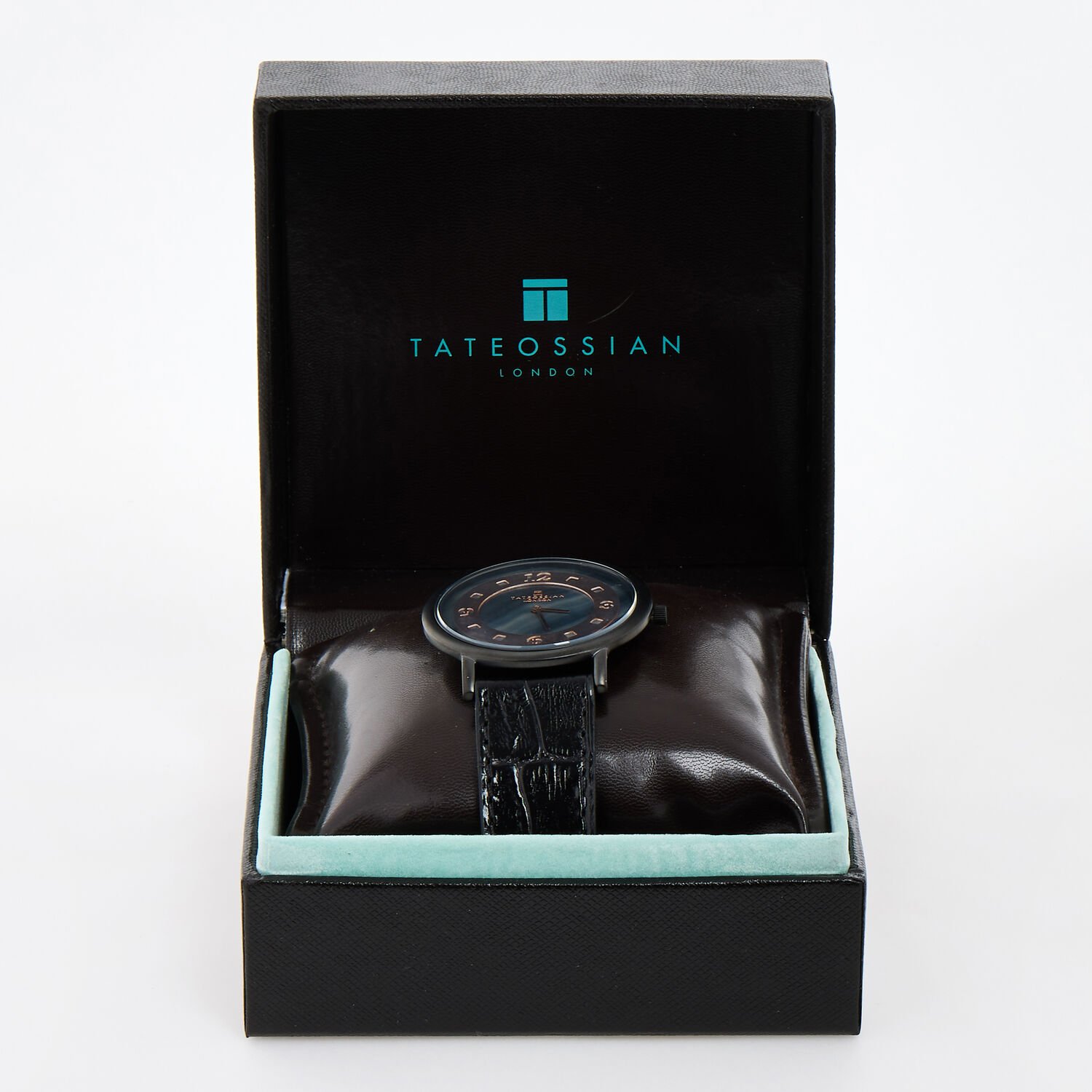 Tateossian Rotondo Slim Black Gunmetal Mother of Pearl Leather Watch WA0077