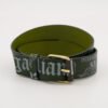 John Galliano Green Leather Gazette Belt Newspaper Print W37