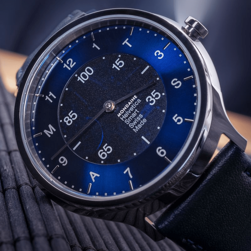 Mondaine Helvetica Unisex Smart Watch Navy Blue Leather MH1.R2S40.LD 40 MM