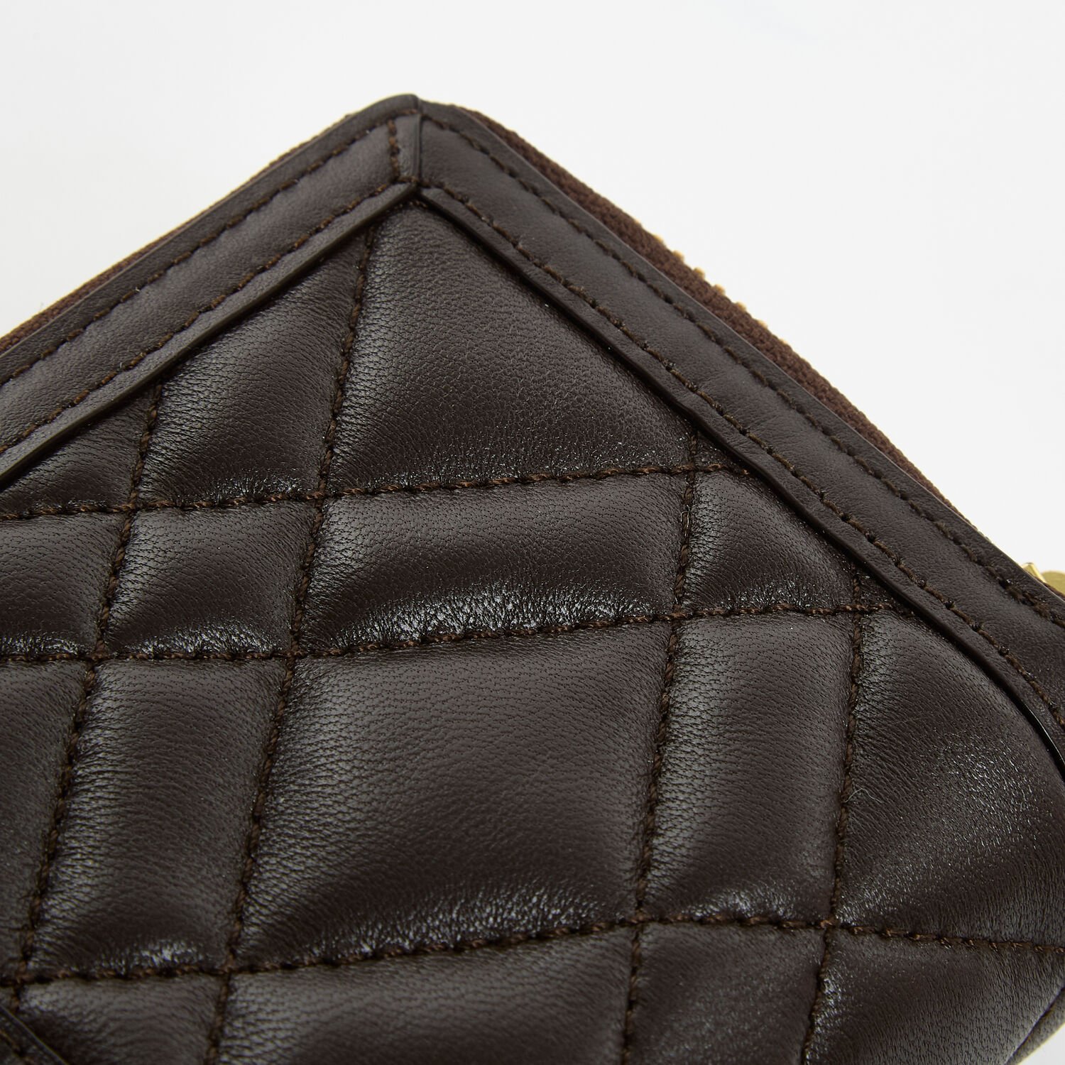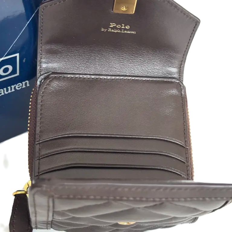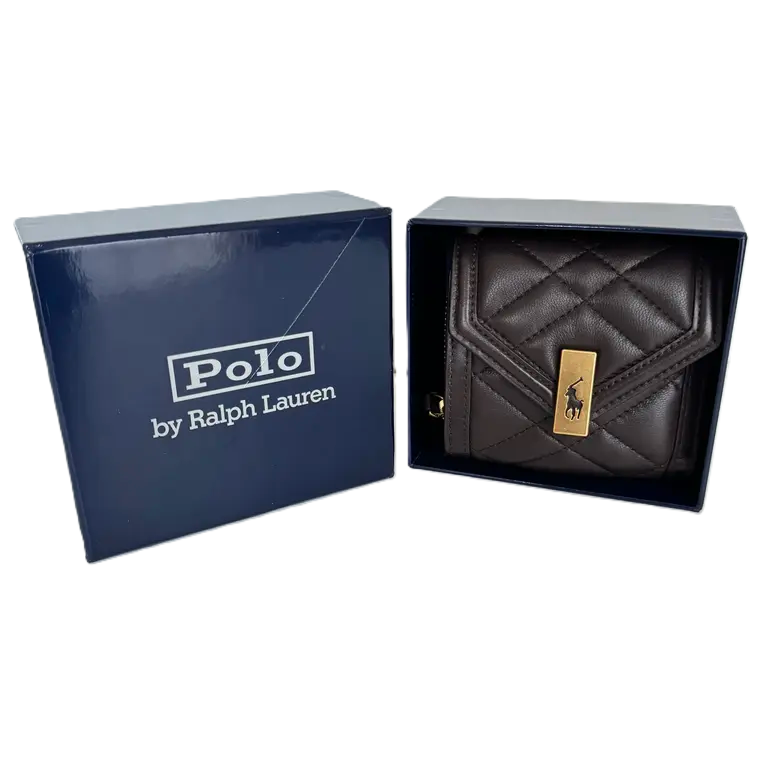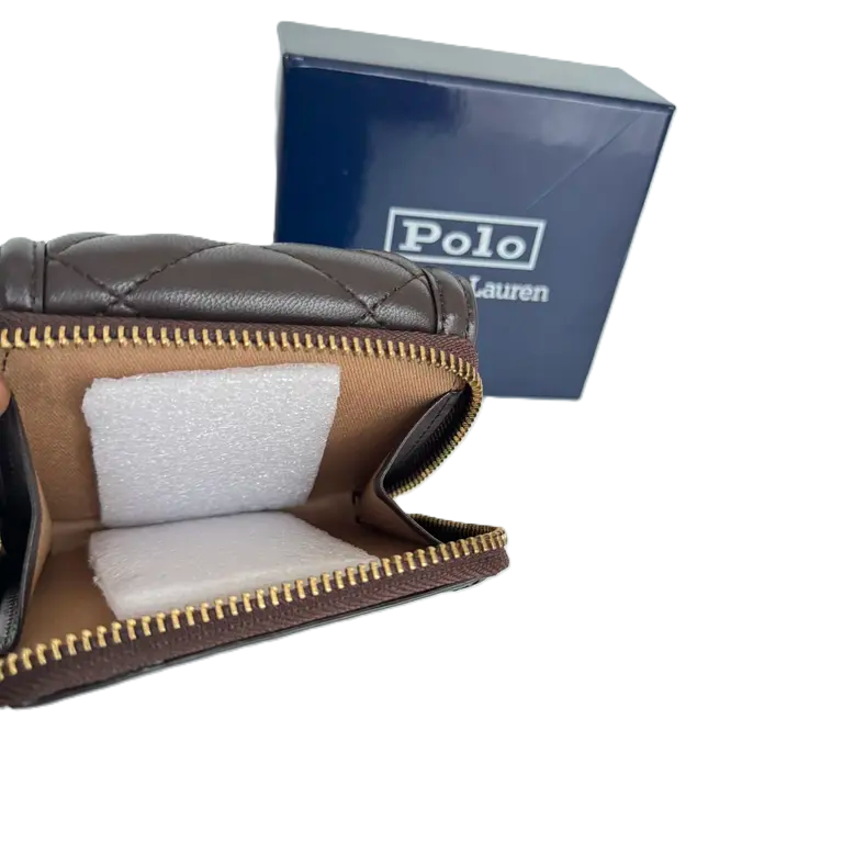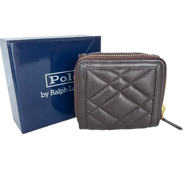 Polo Ralph Lauren Quilted Leather Zip Wallet Brown – Compact Designer Purse