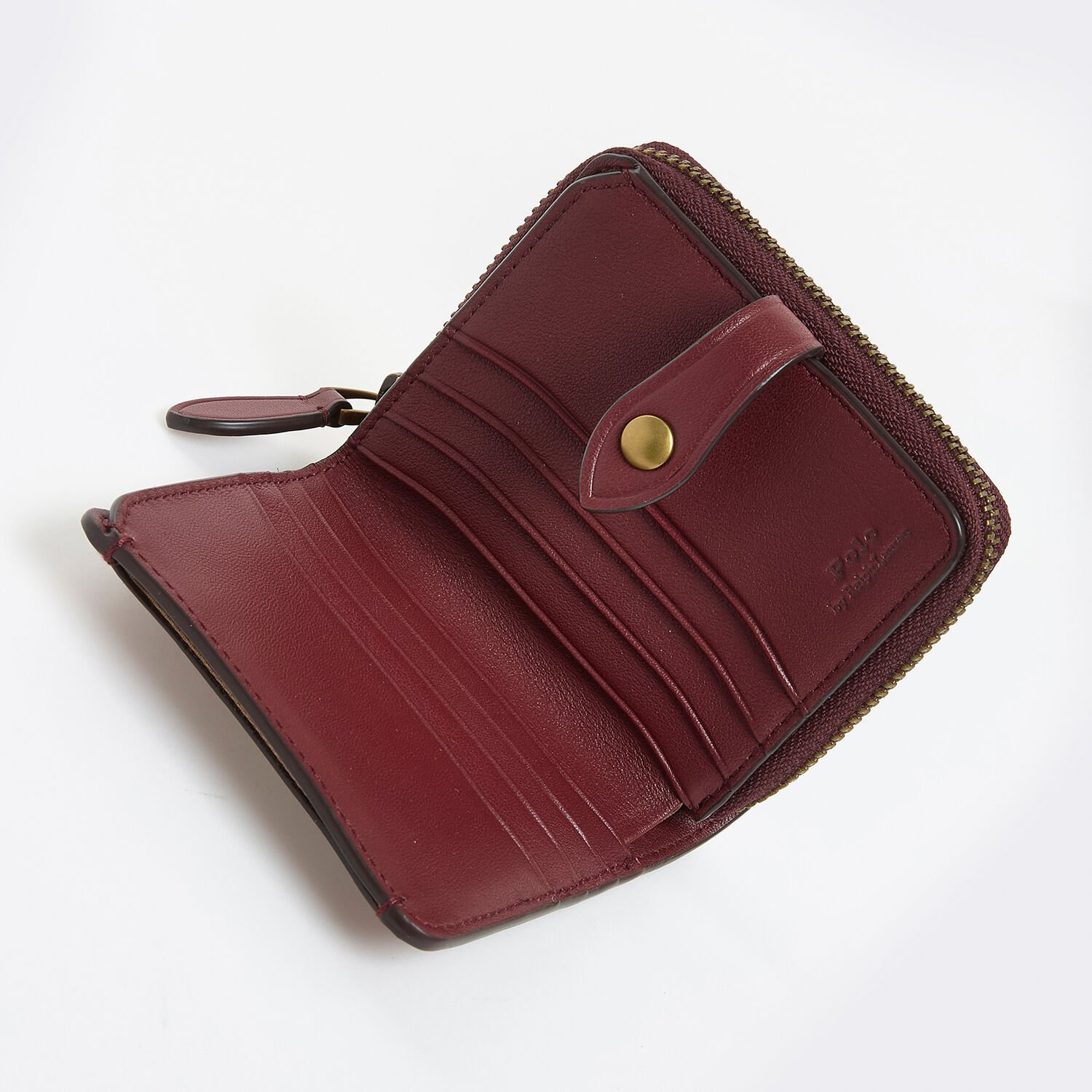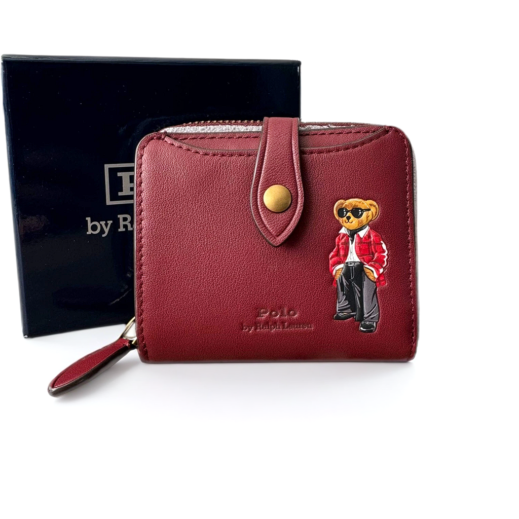 Polo Ralph Lauren Bear Leather Wallet Burgundy Red Zip Button Compact