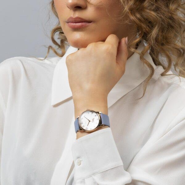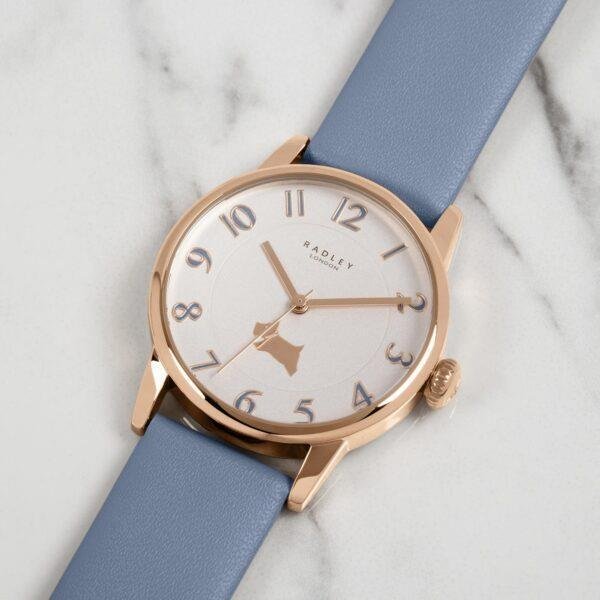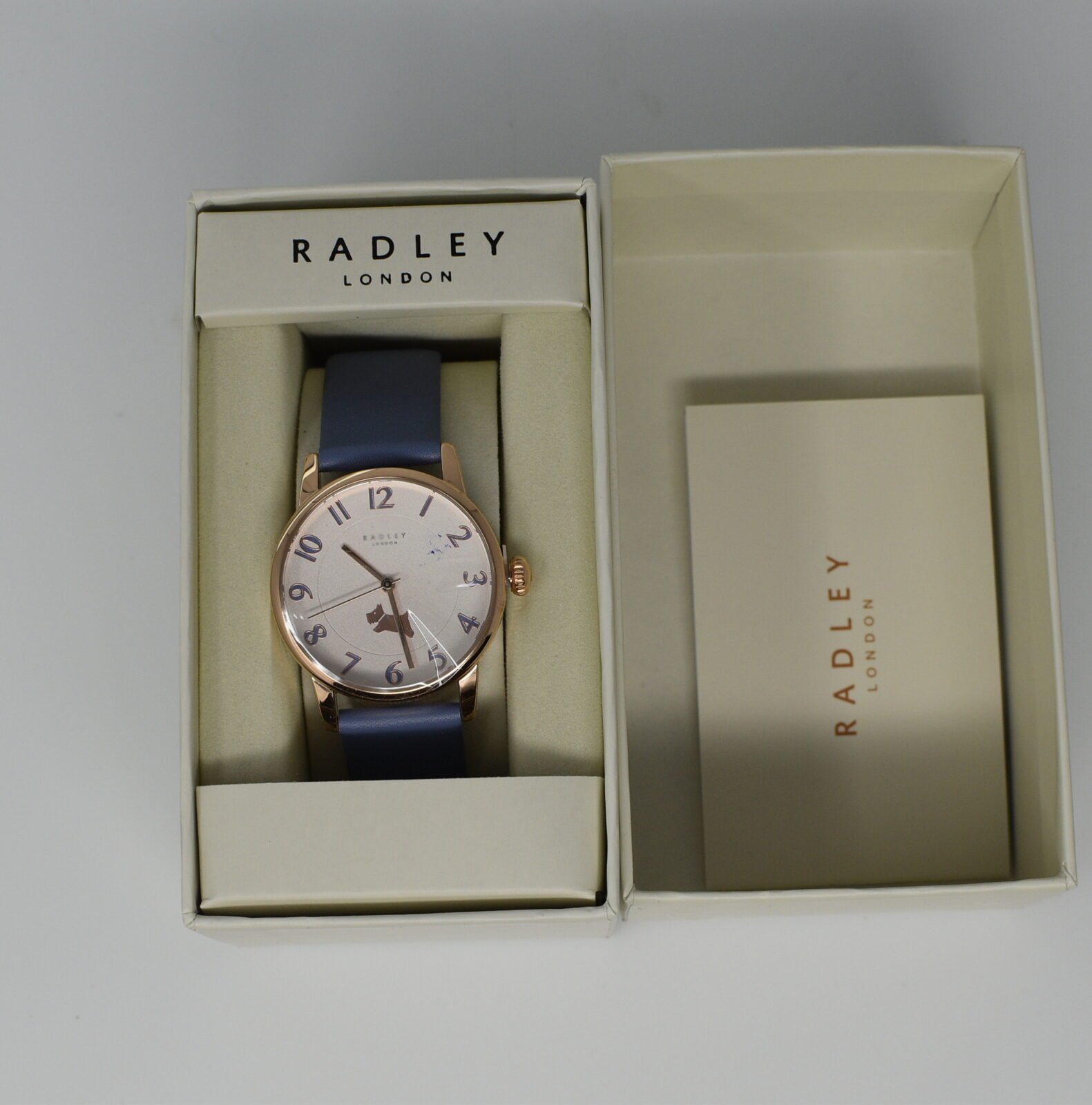 Radley Ladies Watch RY21396A Rose Gold Dial Blue Leather Strap