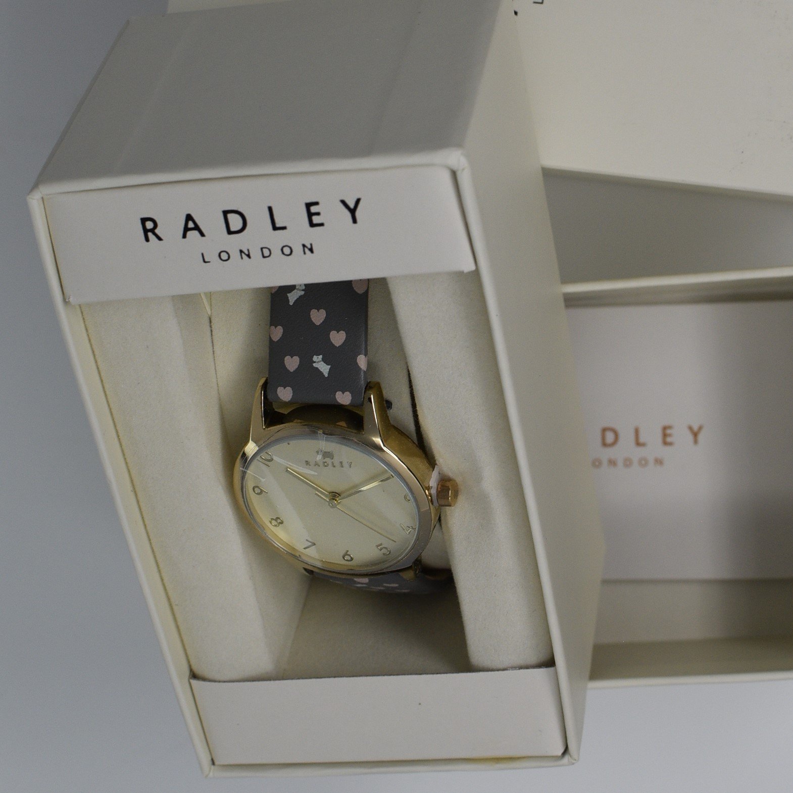 Radley Ladies Watch RY21320A Gold Tone Dial Heart Print Grey Leather Strap
